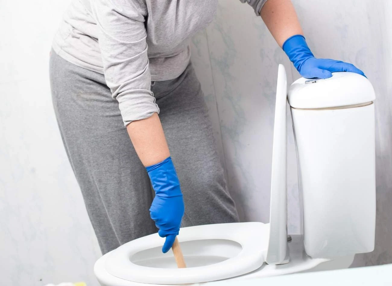 Jeśli zauważysz, że toaleta jest tylko lekko zapchana np. zbyt dużą ilością papieru, spróbuj przepchać go szczotką do wc. Jeśli to nie pomoże, koniecznością będzie założenie gumowych rękawic oraz ręczne usunięcie zalegającego papieru.