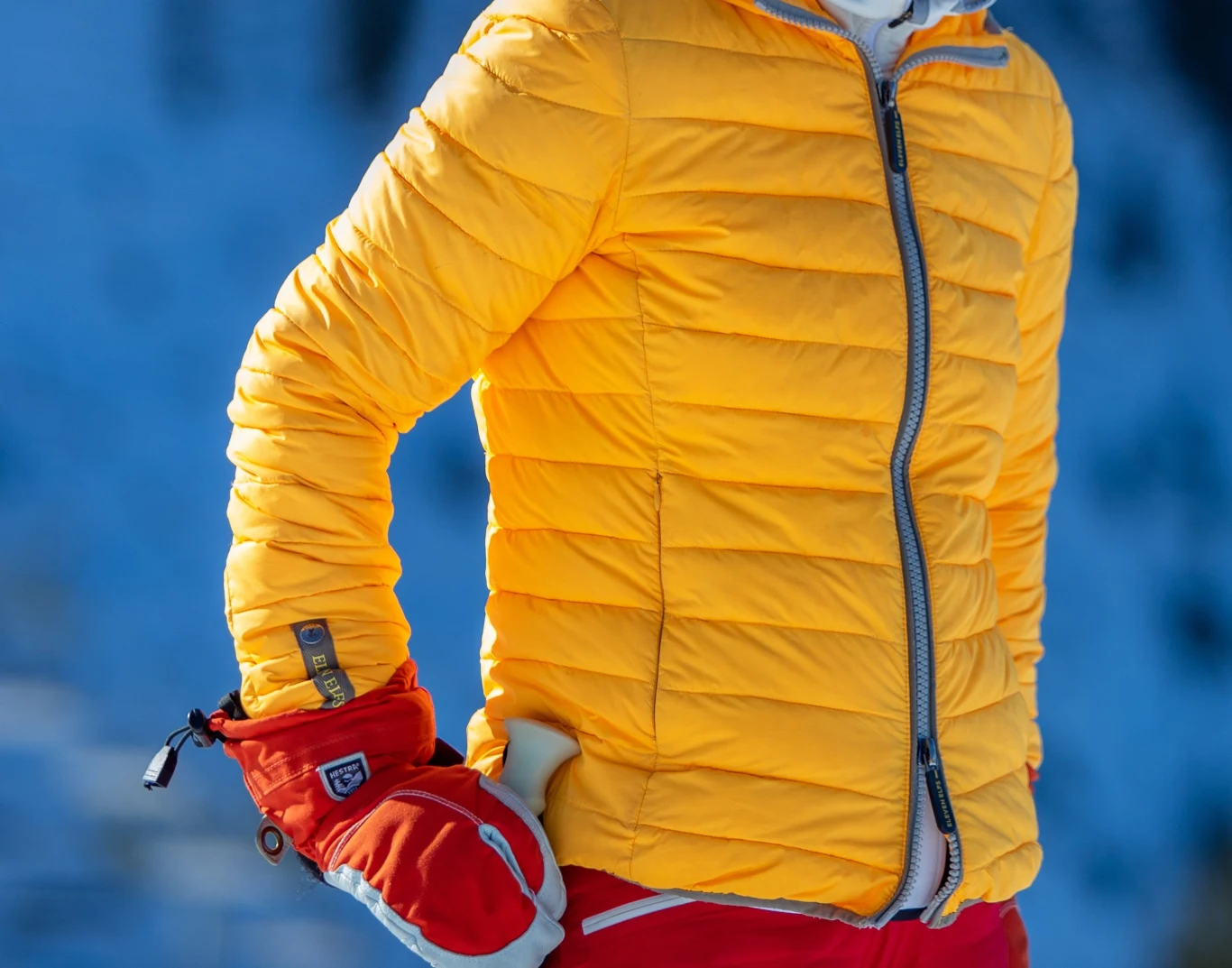 - Otrzep delikatnie kurtkę, tak aby puch wrócił na swoje miejsce i nie powstały puste miejsca.