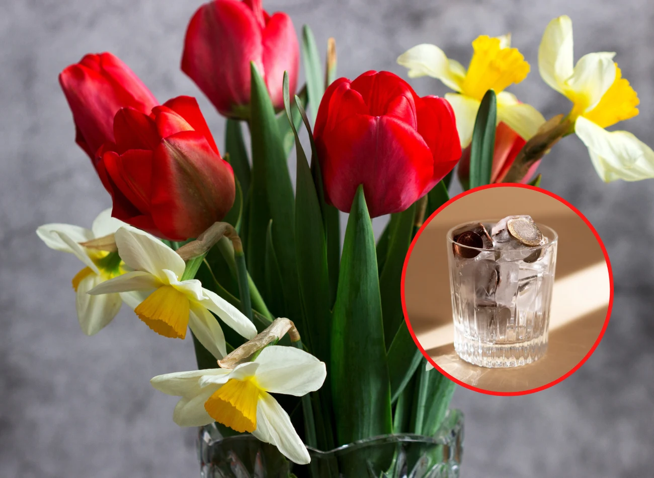 - Kostki lodu — tulipany dłużej zachowają swój piękny wygląd, gdy dorzucimy im do wody kilka kostek lodu. Taka lodowa terapia sprawi, że ich kielichy nie otworzą się zbyt szybko, a ich płatki nie opadną, przez to kwiaty przez dłuższy czas będą pięknie prezentować się w wazonie