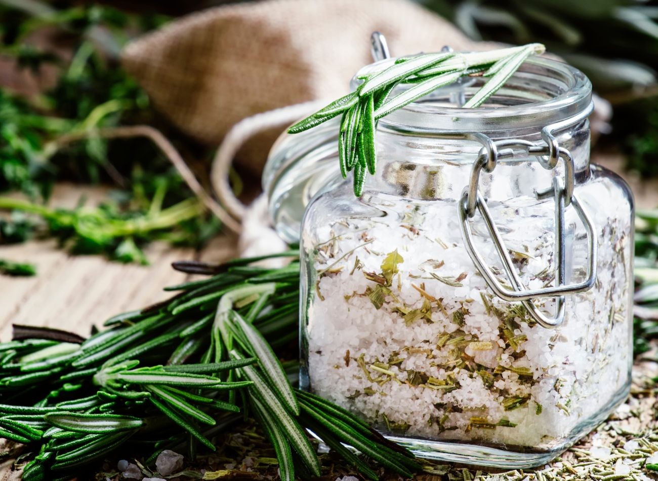 Do gruboziarnistej soli można dodać zarówno świeże, jak i suszone gałązki rozmarynu. Fot. 5PH/CanvaPro