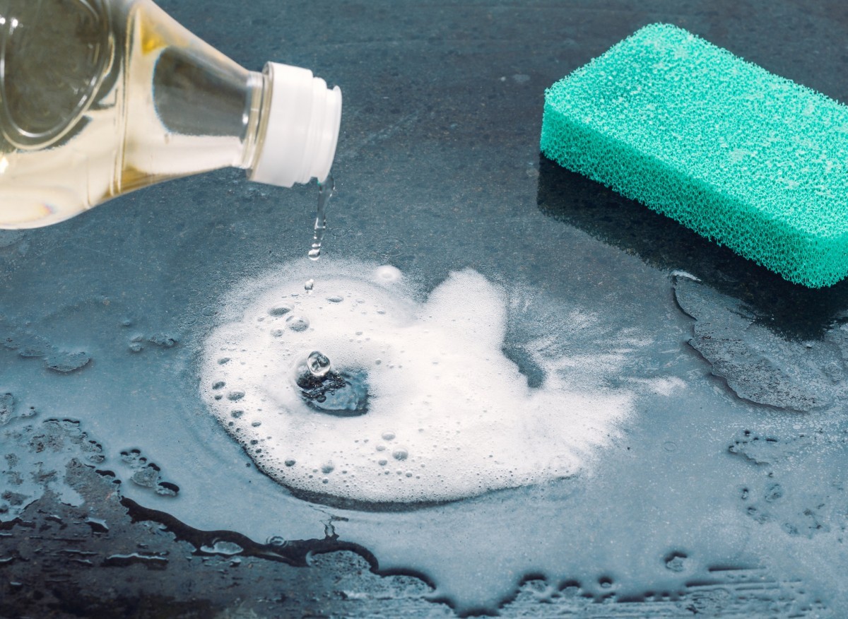 - Woda z płynem do okien lub płynem do naczyń - uniwersalnym sposobem, który pozwoli wyczyścić tłuszcz na szafkach kuchennych jest też posłużenie się mieszaniną wody z płynem do naczyń lub płynem mycia do szyb.