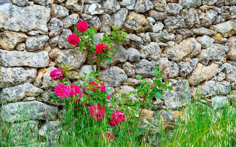Umieszczanie róż przy ścianach i murach to nie zawsze dobry pomysł. Szczególnie gdy te powierzchnie są narażone na mocne słońce. Fot. Georges Flayols / Canva Pro