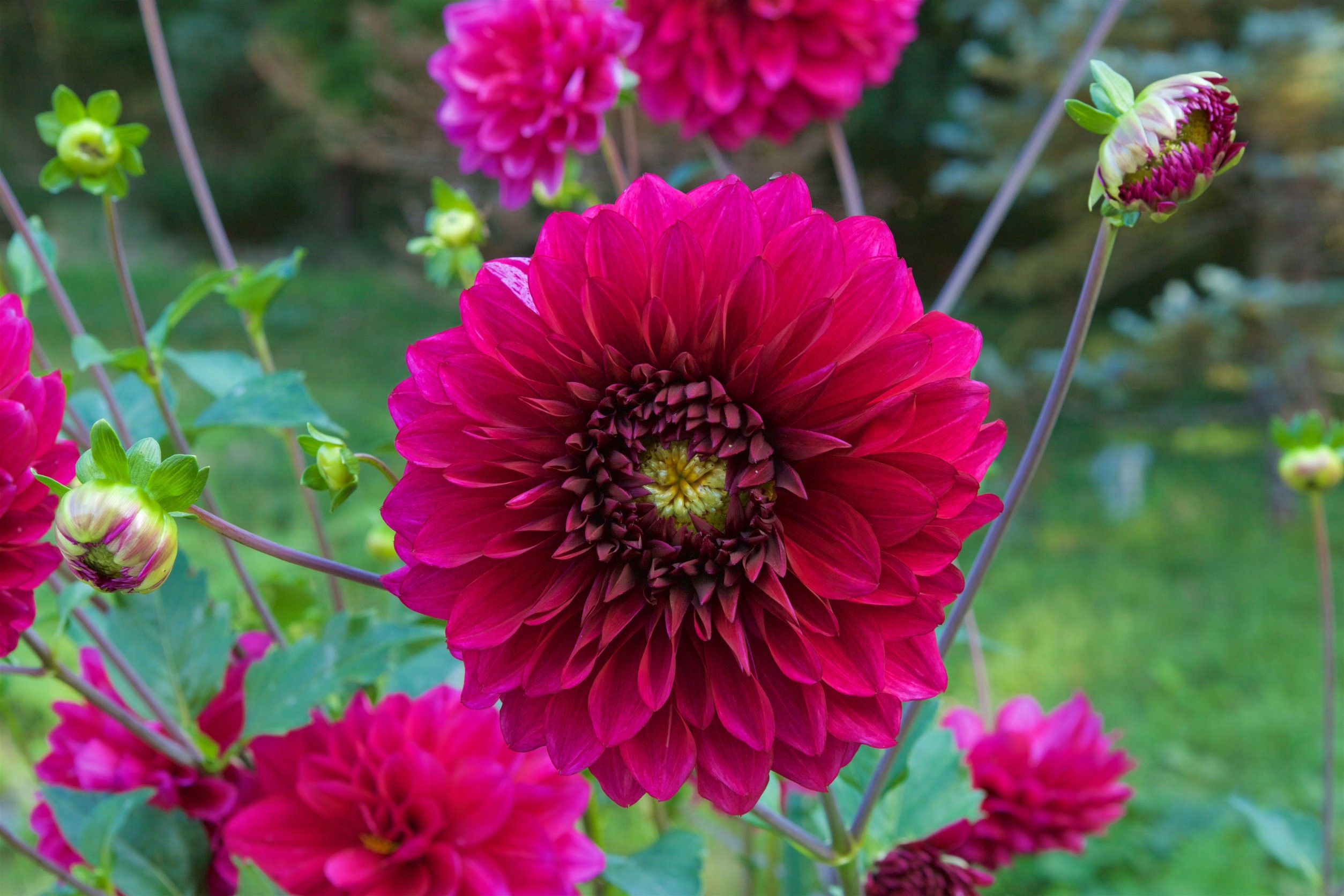 To wieloletnie byliny z rodziny astrowatych. Osiągają nawet do 1,5 m wysokości. Charakteryzują się fantazyjnie uformowanymi, pierzastymi liśćmi oraz niezwykłej urody kwiatami, które występują w wielu kolorach, począwszy od czerwieni i żółci, przez biel, fiolety i róże, na niebieskim skończywszy. Karpy dalii wysadza się do gruntu późną wiosną. Pierwsze pąki wykształcają już na przełomie czerwca i lipca, kwitną aż do później jesieni. Rośliny najlepiej czują się w wilgotnej, przepuszczalnej glebie, w miejscu słonecznym, ale osłoniętym od wiatru. Warto dodać, że dalie to jedne z niewielu gatunków, które wyrosną w towarzystwie orzecha włoskiego. Przeczytaj, co jeszcze posadzić przy orzechu włoskim.