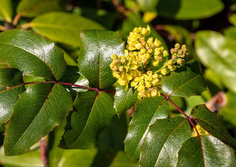 Mahonia pospolita przypomina ostrokrzew, ale kwitnie na żółto. Fot. Animaflora/Canva Pro