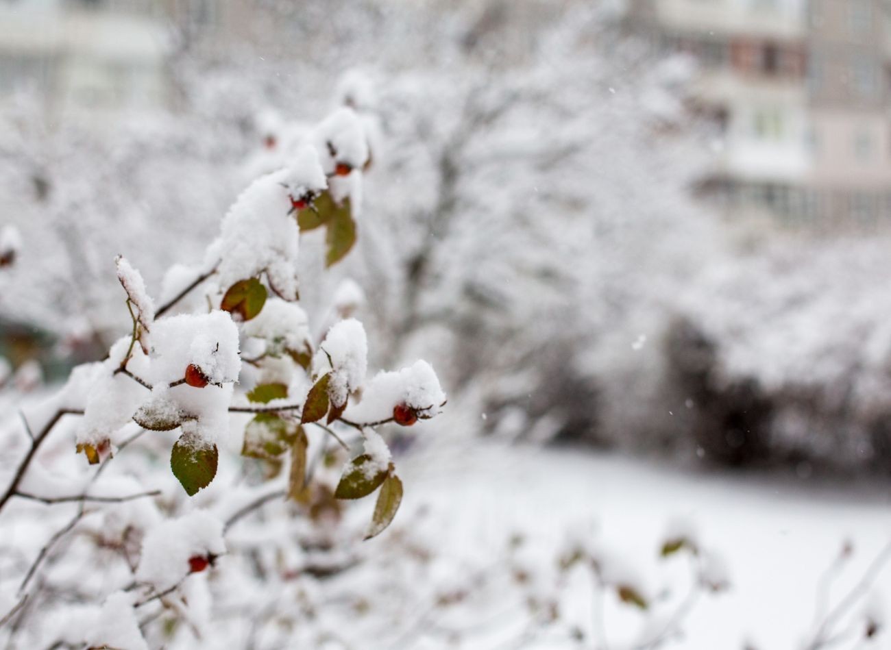 Jeśli śnieg jest lekki, nie strzepuj go z roślin. Pobyć się należy tylko ciężkiej, lodowej porywy. Fot. voobino/123RF.com