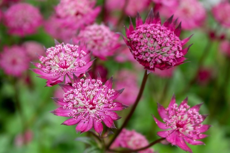 Grupa odmian kolekcjonerskich obejmuje rośliny o nietypowych cechach – trudniej dostępne w handlu, ale oferujące wyjątkowe walory estetyczne. Odmiana ‘Claret’ posiada niemal czarne łodygi i intensywnie winno-czerwone kwiaty, które dobrze komponują się z liśćmi o srebrzystym lub niebieskawym odcieniu. ‘Canneman’ to odmiana o delikatnym, pasteloworóżowym ubarwieniu i niezwykle długim okresie kwitnienia, często sięgającym nawet września. Ciekawostką jest też ‘Sunningdale Variegated’, której liście mają nieregularne, żółtokremowe przebarwienia, co czyni ją efektowną nawet poza okresem kwitnienia.