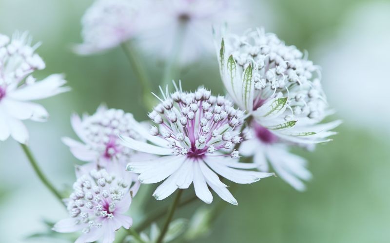 Odmiany w odcieniach różu i pasteli tworzą osobną grupę, szczególnie lubianą w ogrodach w stylu wiejskim i romantycznym. Delikatna ‘Florence’ ma jasnoróżowe, lekko rozwarstwione kwiaty i dobrze komponuje się z jeżówkami oraz kocimiętką. Równie ceniona ‘Roma’ wyróżnia się długim okresem kwitnienia – od czerwca aż do jesieni – i odpornością na krótkotrwałe susze. Ciekawą propozycją jest także ‘Star of Beauty’, u której jasnokremowe przylistki kontrastują z wyraźnie zabarwionymi, purpurowymi pręcikami. Tego typu odmiany są wykorzystywane również przez florystów – stanowią alternatywę dla gipsówki w kompozycjach ślubnych, zapewniając wyraźniejszą strukturę i bardziej wyszukaną kolorystykę.