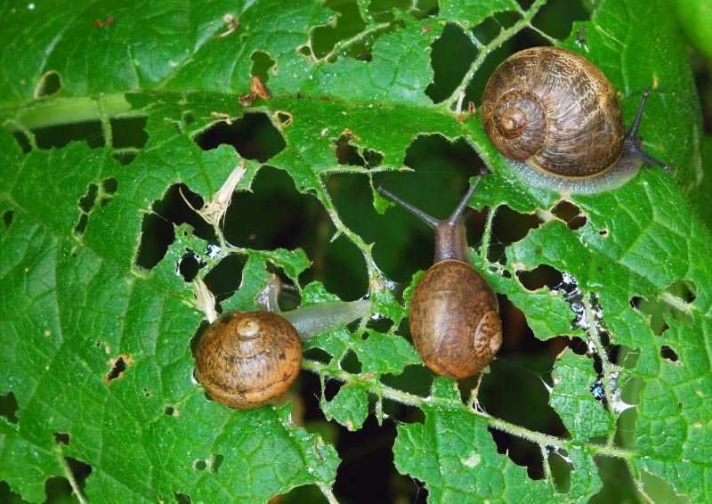 Wygryzione, nieregularne dziury i srebrzysty śluz to objawy żerowania ślimaków. Fot. savoilic/CanvaPro