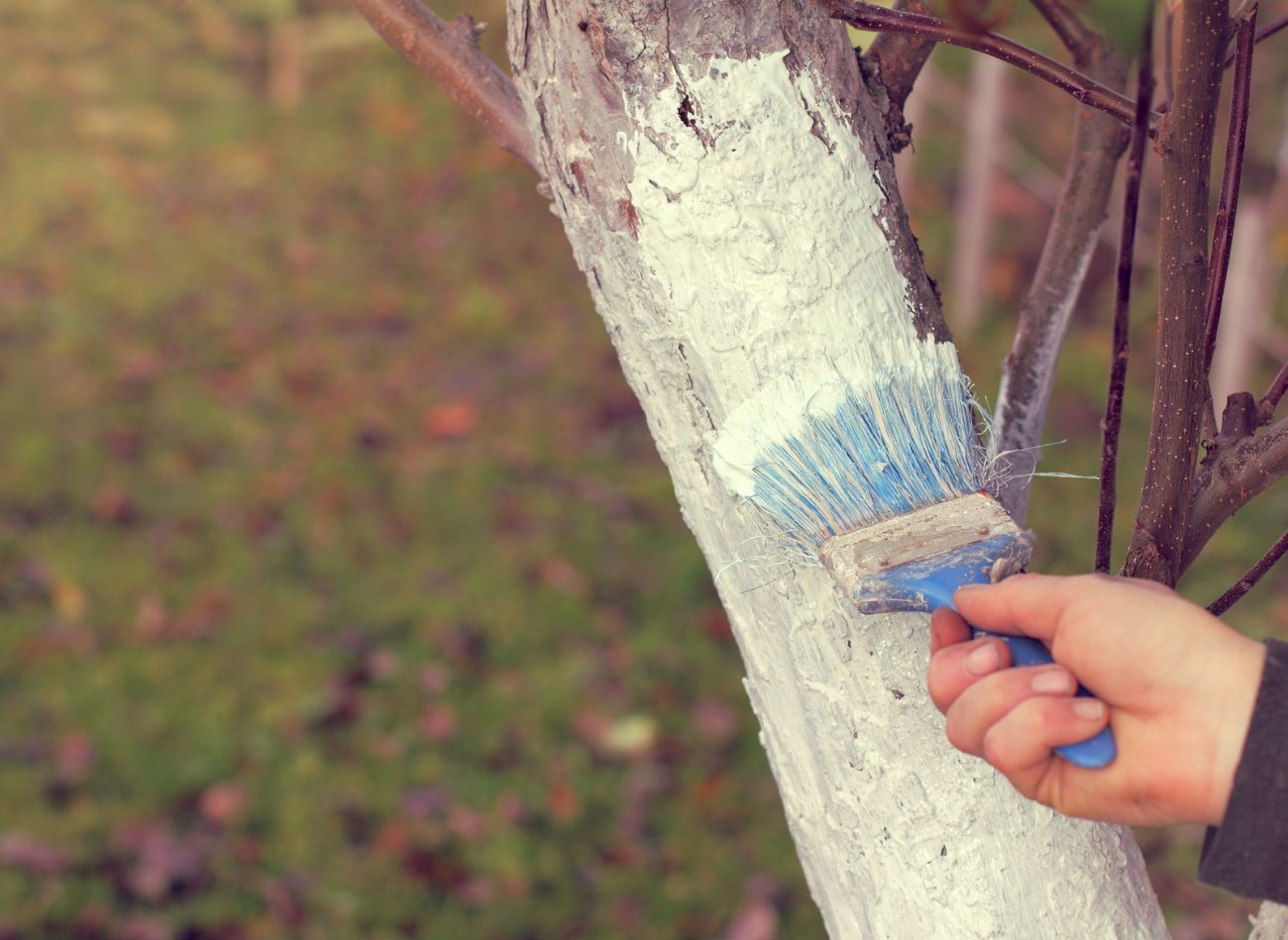 Bielenie drzew owocowych to ważny zabieg, który chroni korę przed pękaniem podczas silnych mrozów. Fot. ezesem178/123RF.com