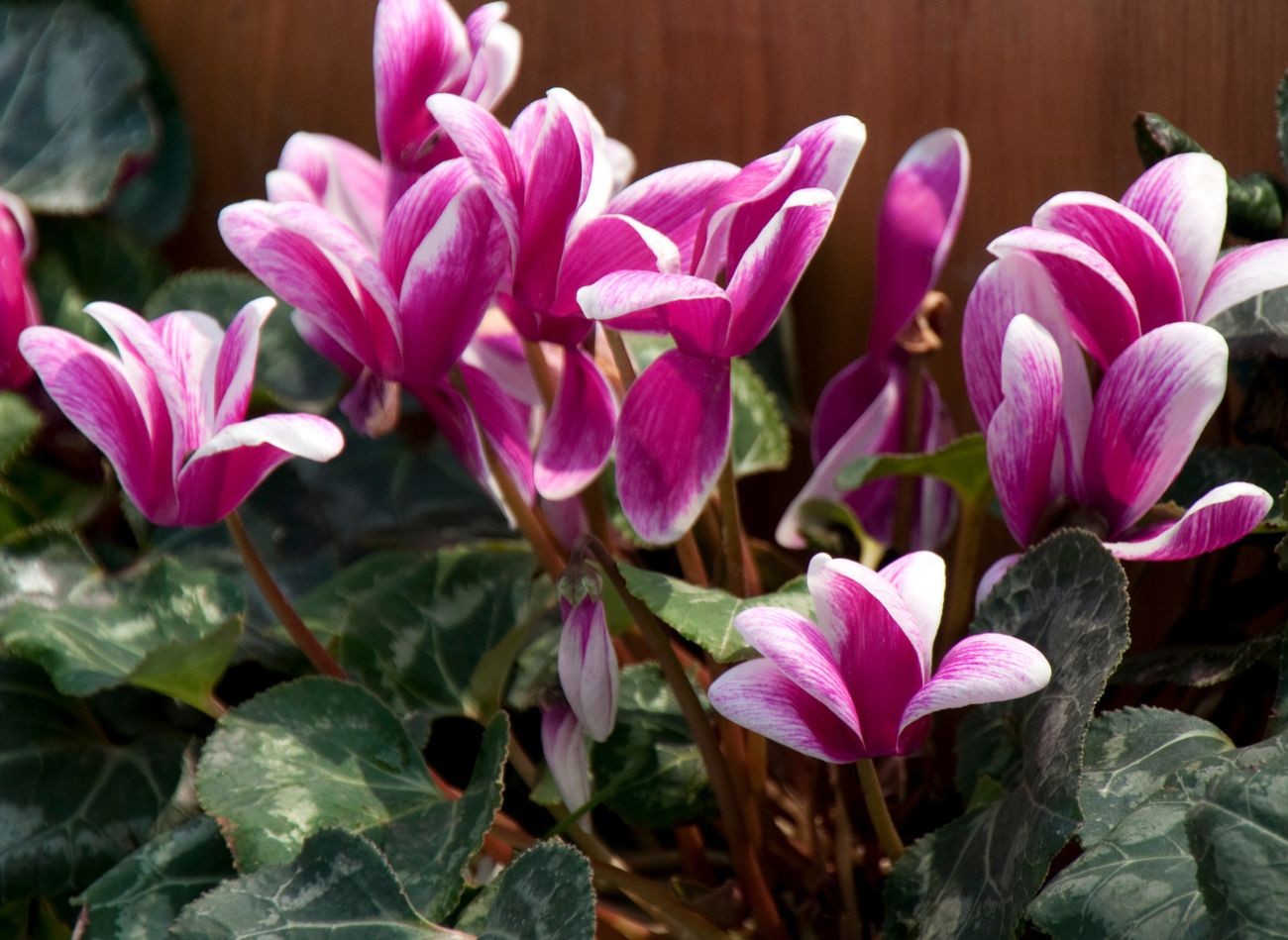 Kwiaty mogą mieć płatki gładkie, postrzępione lub pofalowane, różowe, czerwone lub białe, jedno lub dwubarwne. Dostępne są także urokliwe odmiany miniaturowe, dorastające do 20 cm wysokości, podczas gdy większe rośliny mogą osiągać ok. 40 cm wysokości. Dla początkujących lepsze są odmiany miniaturowe, które zwykle kwitną dłużej. Poza tym lepiej one znoszą wyższą temperaturę otoczenia. Bo cyklameny dobrze czują się w miejscach chłodnych. W czasie kwitnienia optymalna dla nich temperatura wynosi 10-15 stopni Celsjusza, podczas gdy w naszych domach jest zazwyczaj znacznie cieplej. Starajmy się zatem zapewnić naszej roślinie jak najchłodniejsze stanowisko.