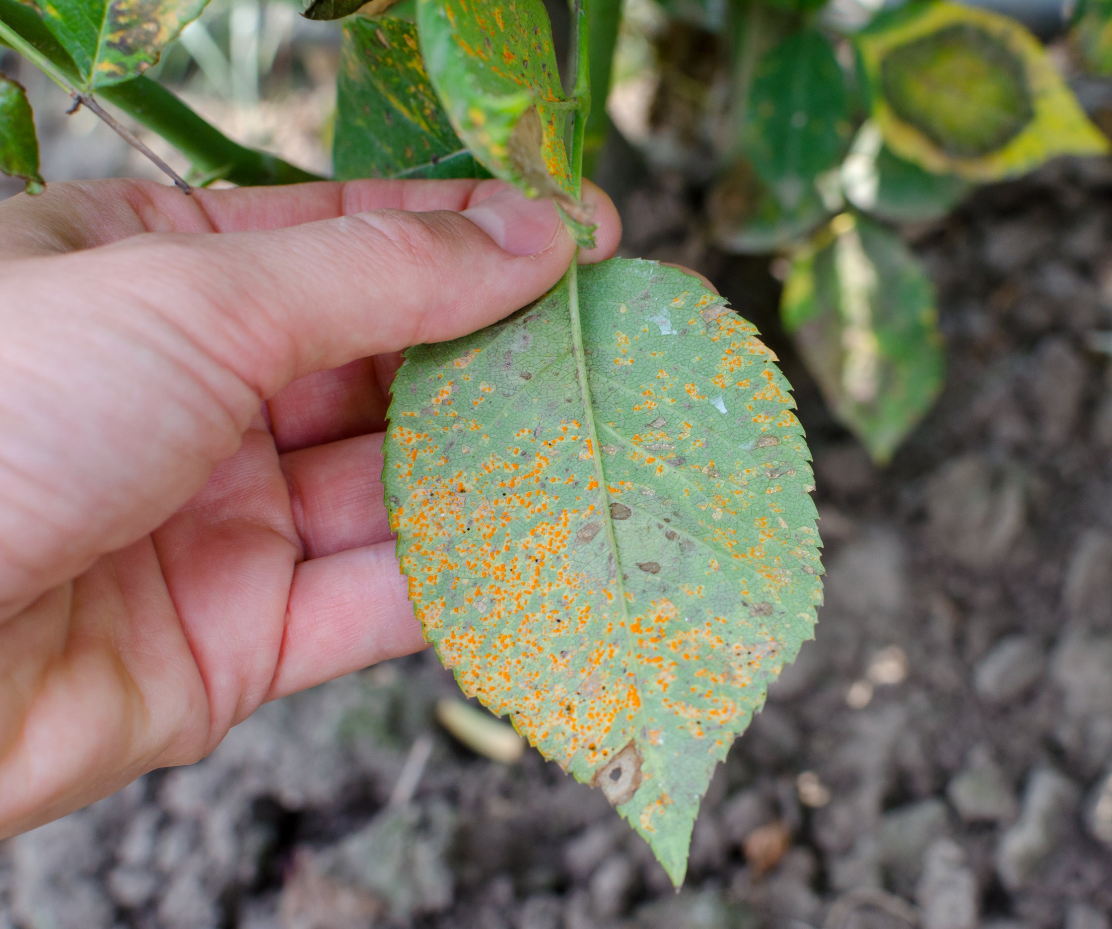 Inną często pojawiającą się chorobą róż jest tak zwana rdza pojawiająca się na liściach. Można na nich zaobserwować wówczas pomarańczowe plamy. Odwracając je, widoczne są gęste skupiska grzybów. Dotknięte tą przypadłością liście stopniowo ulegają całkowitej deformacji, aby ostatecznie opaść. Oprócz liści rdza może zainfekować również sam pęd róży. Szczególnie nasila się ona w okresie wiosennym - najczęściej na przełomie kwietnia i maja.