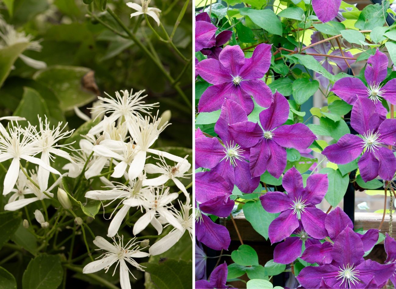 Dla ogrodów naturalistycznych z dużym udziałem półcienia odpowiednie będą clematisy botaniczne, głównie z grup Atragene i Montana. Odmiany takie jak ‘Freda’, ‘Broughton Star’ czy ‘Tetrarose’ rozpoczynają kwitnienie już pod koniec kwietnia, wyprzedzając większość bylin i krzewów ozdobnych. Nie wymagają cięcia, rosną umiarkowanie silnie, a ich subtelne kwiaty w odcieniach różu, bieli i fioletu pachną delikatnie wanilią lub czekoladą. Należy jednak pamiętać, że odmiany górskie, zwłaszcza z grupy Montana, są bardziej wrażliwe na niskie temperatury i potrzebują miejsc osłoniętych od mroźnych, wschodnich wiatrów.