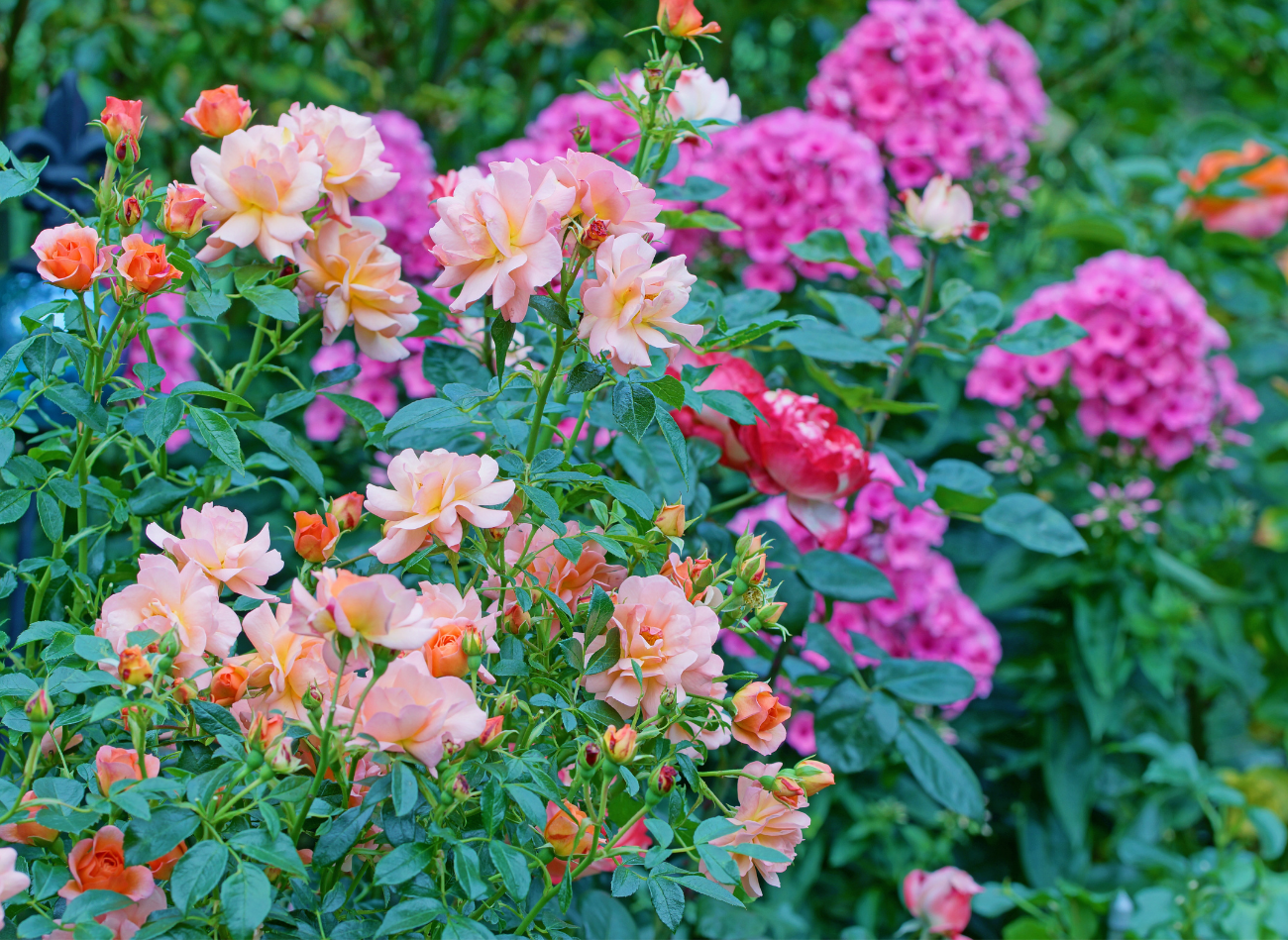 Róże wielokwiatowe można komponować z innymi roślinami rabatowymi np. floksami. Fot. Pexels