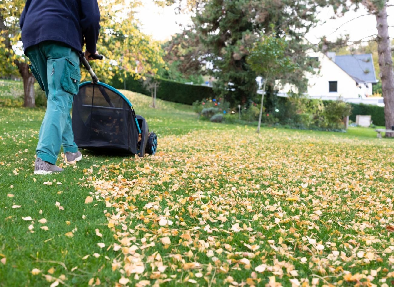 Przy oczyszczeniu trawników o dużej powierzchni, niezwykle pomocna jest zgrabiarka do liści lub kosiarka z funkcją rozdrabniania. Fot. fotografixx/CanvaPro