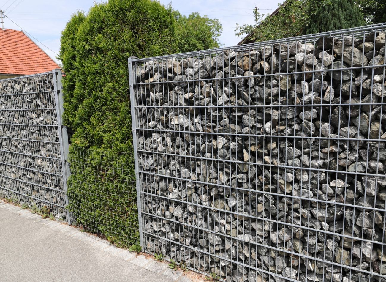 Ciekawą alternatywą są gabiony, czyli stalowe kosze wypełnione kamieniami. Tworzą solidną osłonę o industrialnym charakterze i pasują do nowoczesnych ogrodów.
