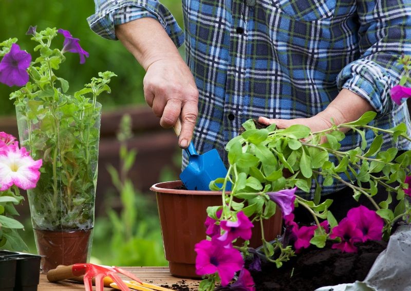 Ziemia do kwiatów doniczkowych powinna być żyzna i przepuszczalna. W przypadku roślin kwitnących warto wybrać specjalne podłoże wzbogacone nawozem o przedłużonym działaniu. Sadzenie najlepiej rozpocząć po ustąpieniu wiosennych przymrozków, zwykle w drugiej połowie maja, gdy temperatury w nocy nie spadają poniżej zera.