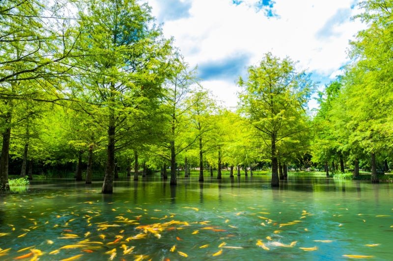 Cyprysik błotny to gatunek drzewa, który doskonale radzi sobie na błotnistych i zalewowych terenach. Fot. 123RF.com