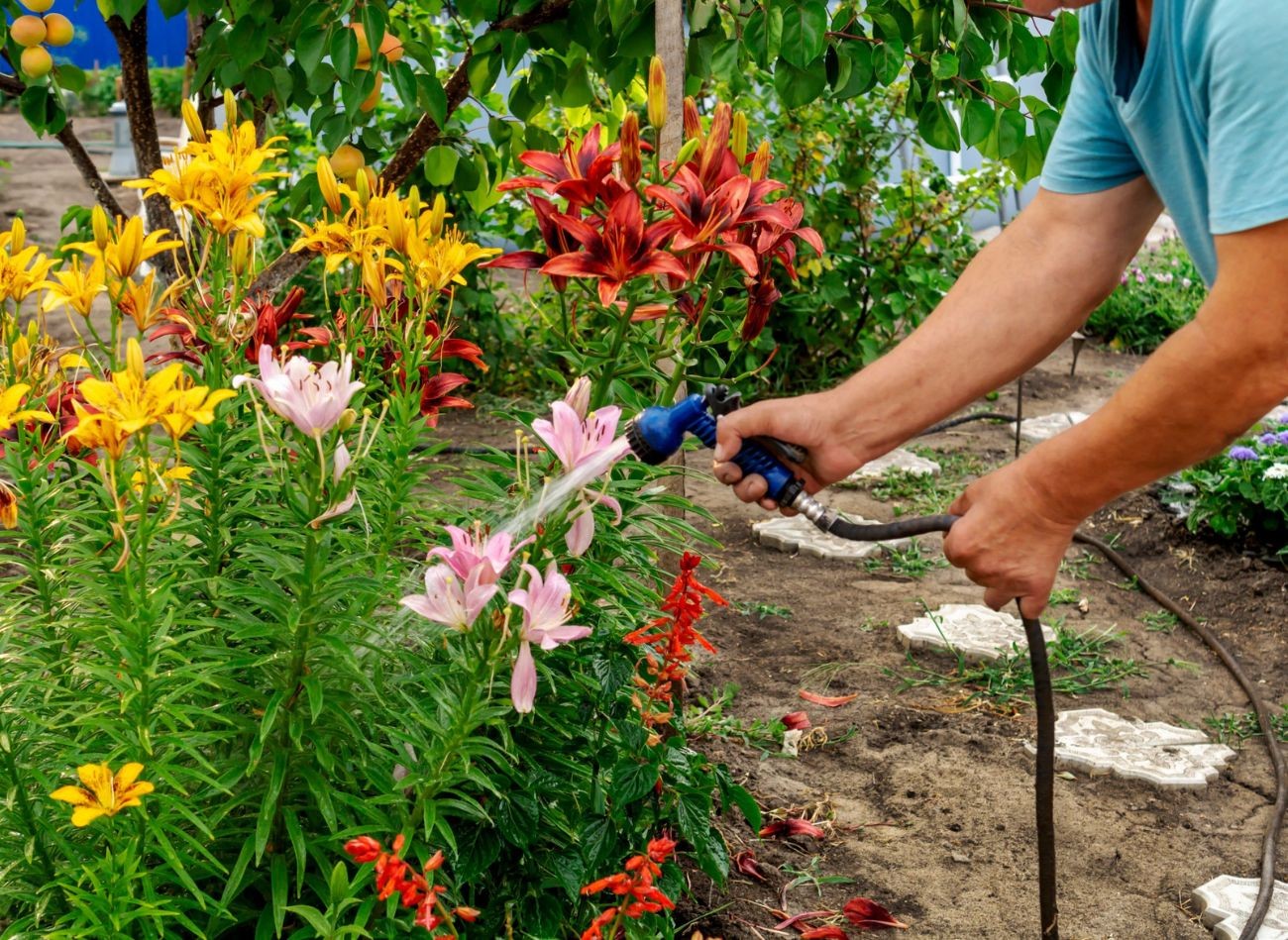 Lilie są delikatnymi kwiatami. W ich pielęgnacji musimy pamiętać o regularnym, ale niezbyt intensywnym podlewaniu. Kwiaty źle znoszą suszę, ale nie lubią też nadmiernej wilgoci. Z tego powodu warto je posadzić na odrobinę wyższej rabacie – nadmiar wody będzie z niej spływał.