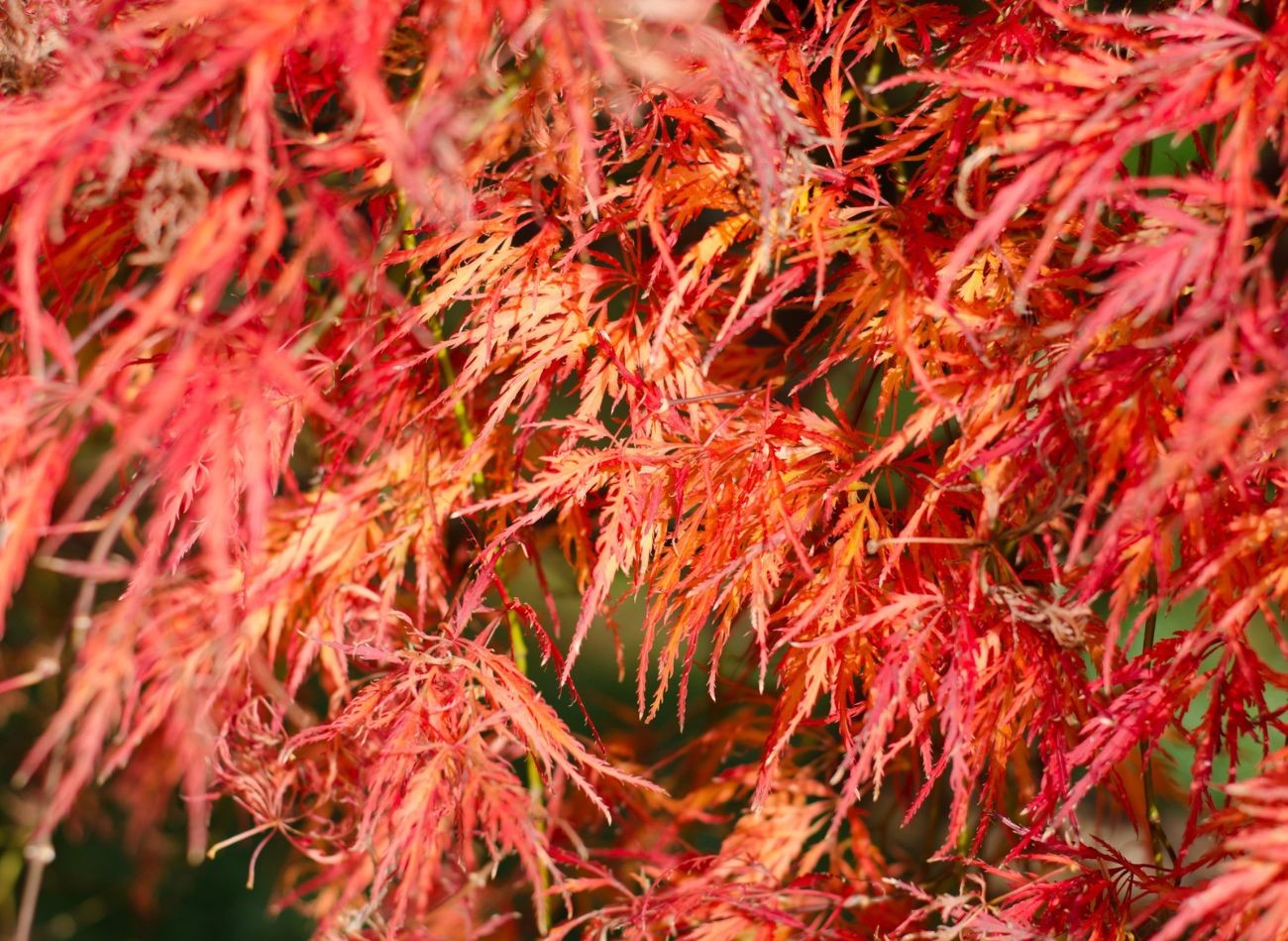 Klon palmowy musi mieć odpowiednią ilość słońca w ciągu dnia. Inaczej liście wybarwiają się na zielono. Fot. loflo69/CanvaPro