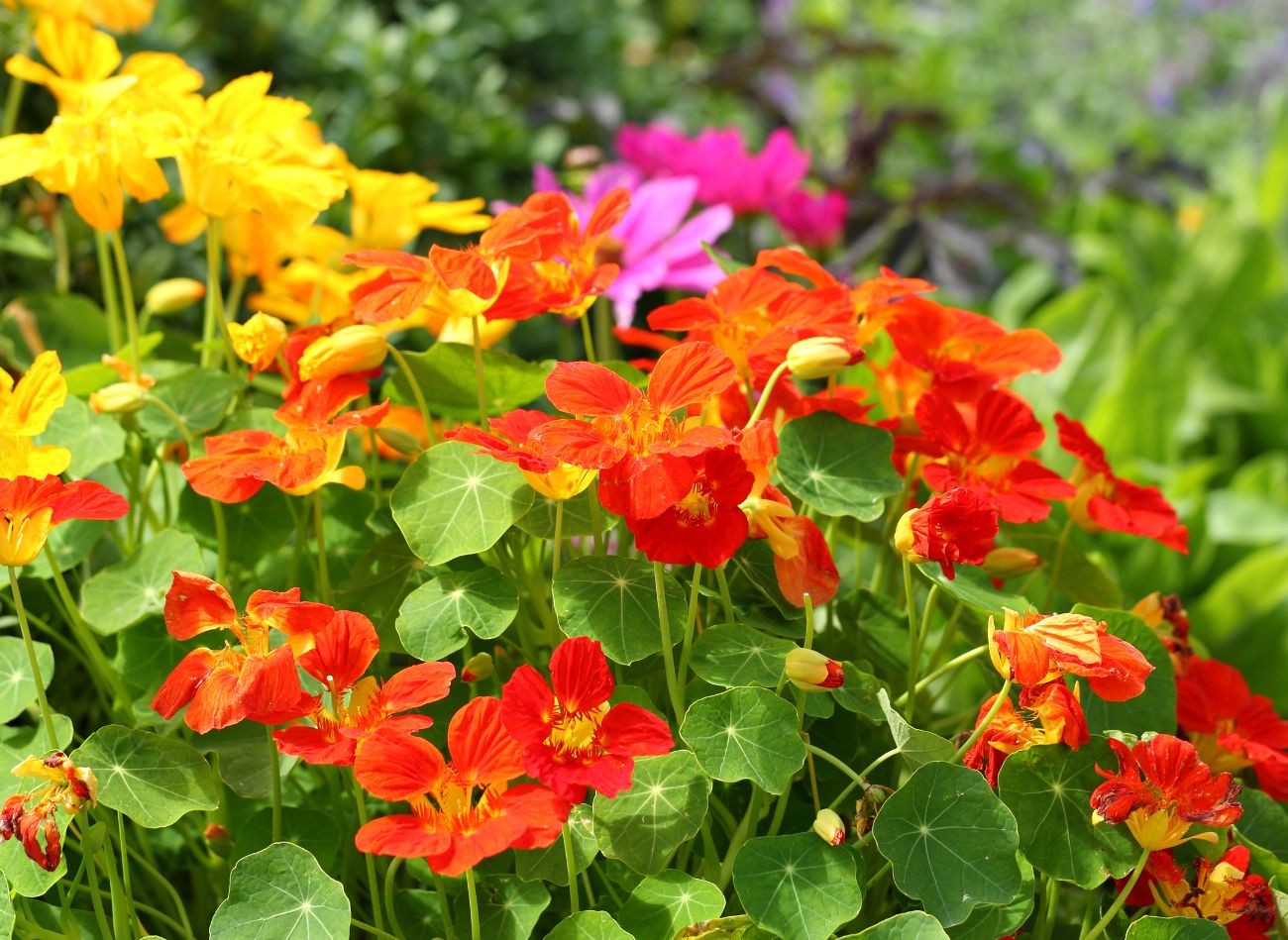 - nasturcja – wabiąc mszyce, chroni okoliczne rośliny (np. róże) przed atakiem tych szkodników, a przy tym cieszy oczy kolorowymi kwiatami.
