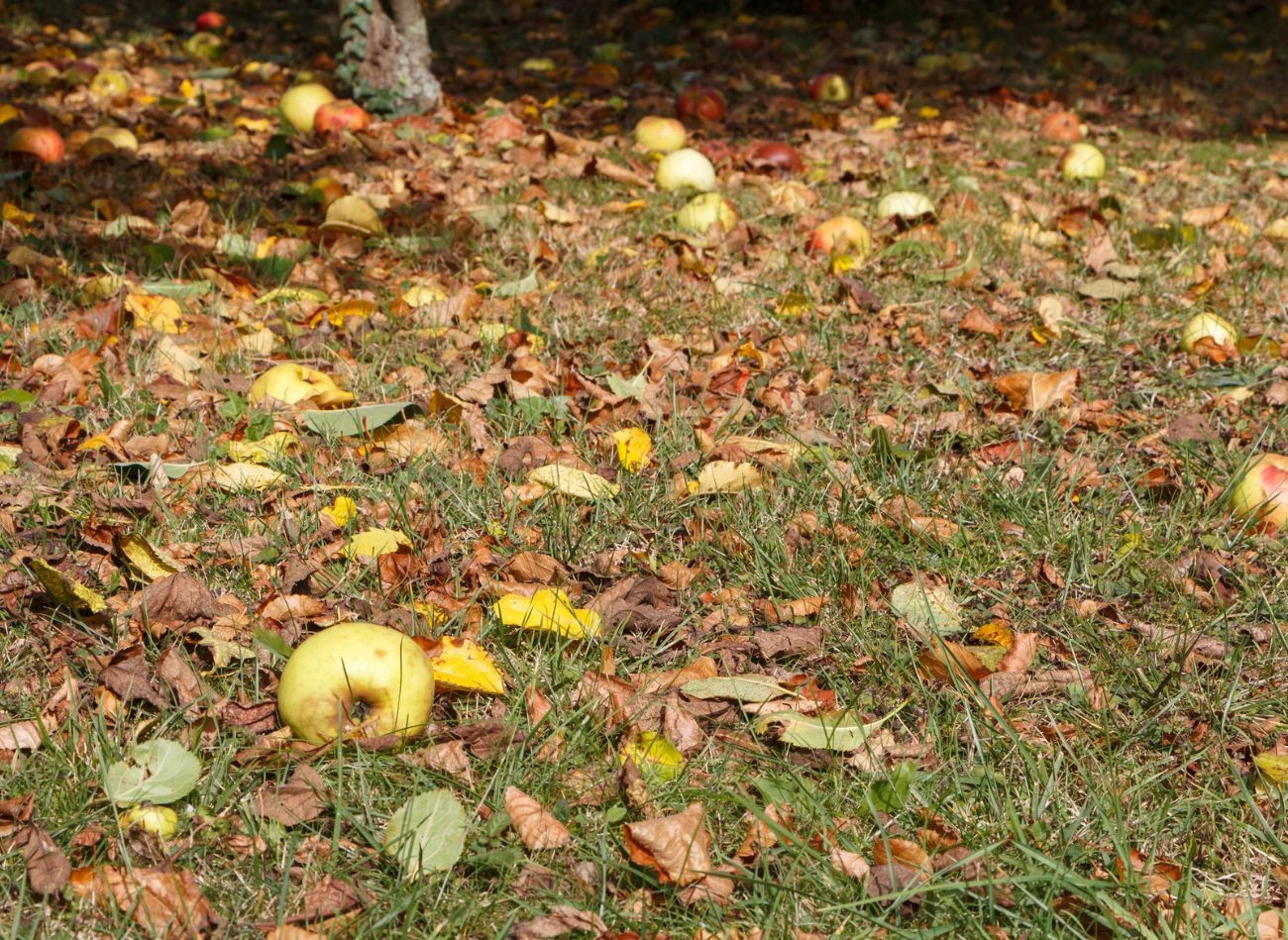 Pozostawione na trawniku owoce mogą powodować gnicie darni i rozwój chorób grzybowych. Fot. oceane2508/123RF.com