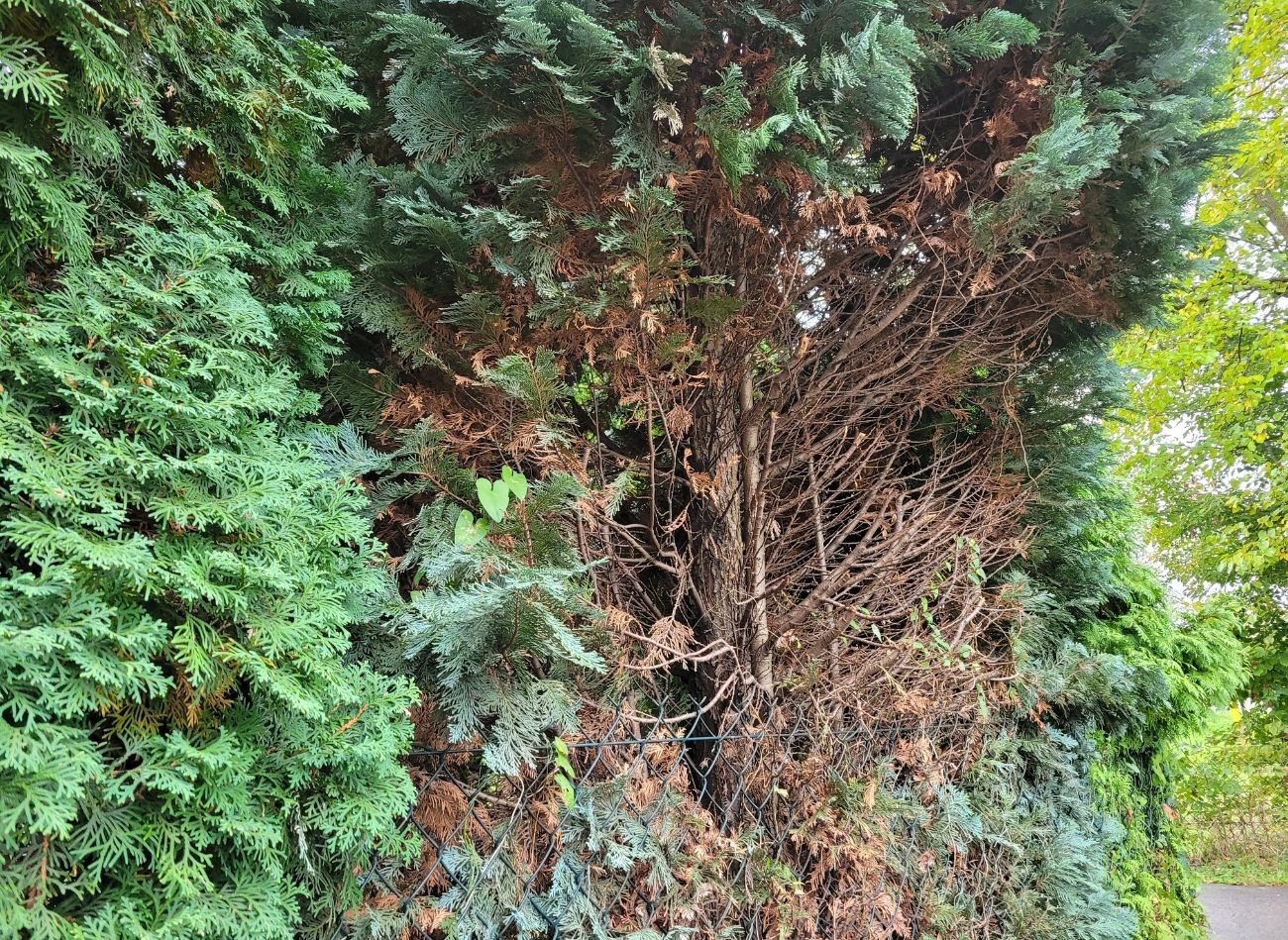 Nienaturalne opadanie i brązowienie igieł to pierwsze sygnały, że tuja zaczyna chorować. Fot. Iwona Adamek/Deccoria.pl