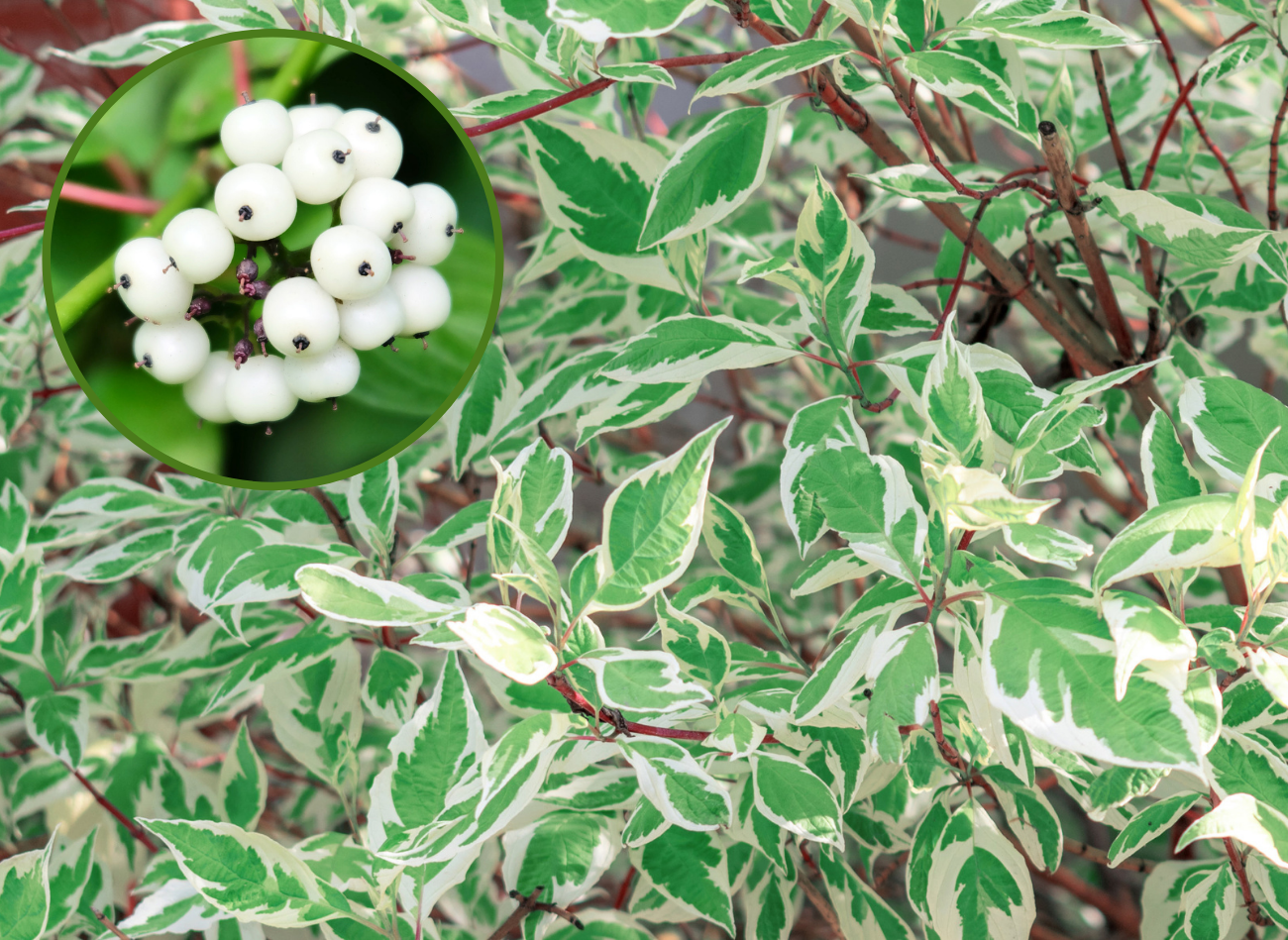 Dereń biały posiada dekoracyjne owoce i świetnie nadaje się na ozdobny żywopłot. Fot. 123RF/PICSEL