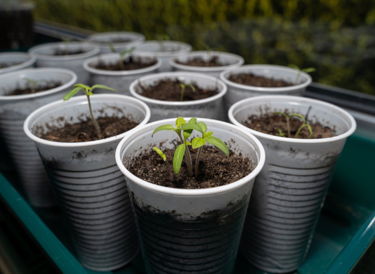 Najlepszym wyborem do przesadzania siewek są kubki lub doniczki o pojemności około 500 ml, wypełnione żyzną, przepuszczalną ziemią.Fot. mentorbeqiri
