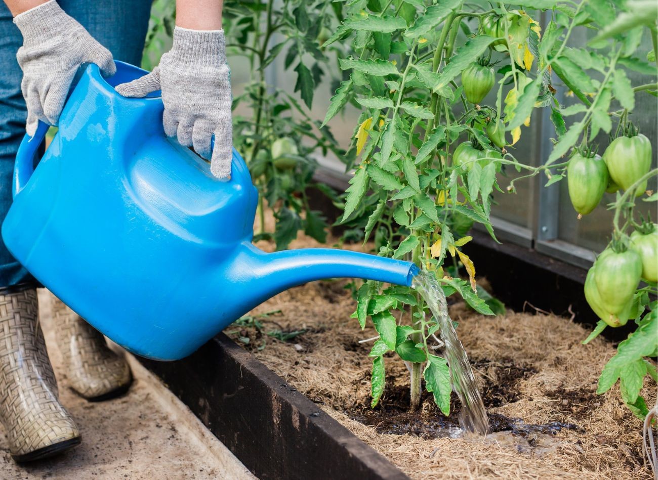 Podlewanie pomidorów wodą z mlekiem w proporcji 1:5 powinno odbywać się bezpośrednio pod korzeń. Fot. satura86/123RF.com