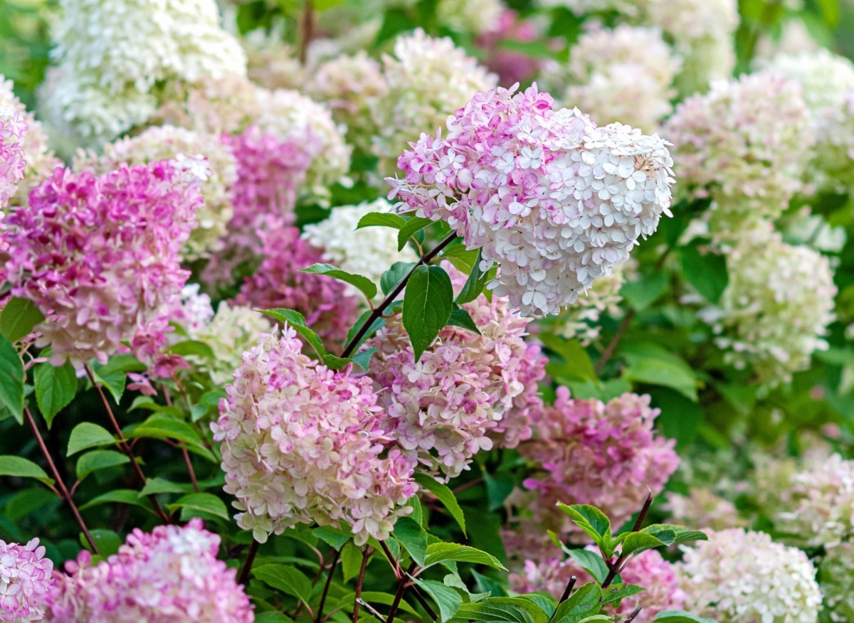 - Hortensja bukietowa – jest gatunkiem rosnącym maksymalnie do metra wysokości. Ma bardzo dużo liści i duże kwiatostany, w stożkowym kształcie. Wypuszcza białe kwiaty, które przebarwiają się później na kolor zielony lub różowy. W przeciwieństwie do ogrodowej jest bardziej odporna na mrozy. Odmiany tej hortensji to na przykład: Polar Bear, Pink Diamond, Vanille Fraise, Limelight lub Candlelight.
