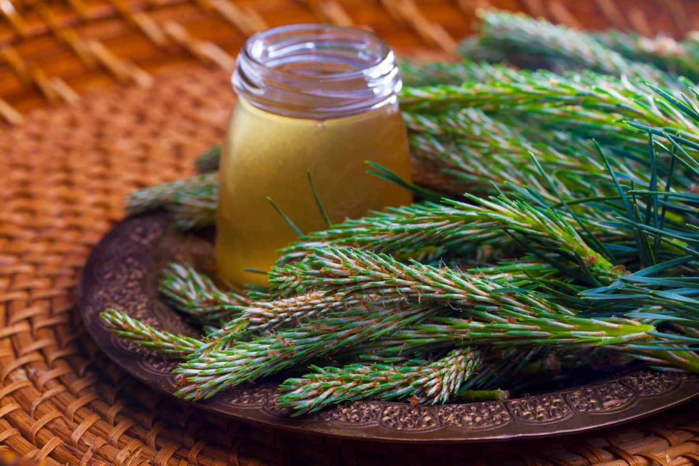 - młode pędy i pączki sosny – stanowią bogate źródło olejków eterycznych, żywicę, gorzkie związki i kwas askorbinowy,