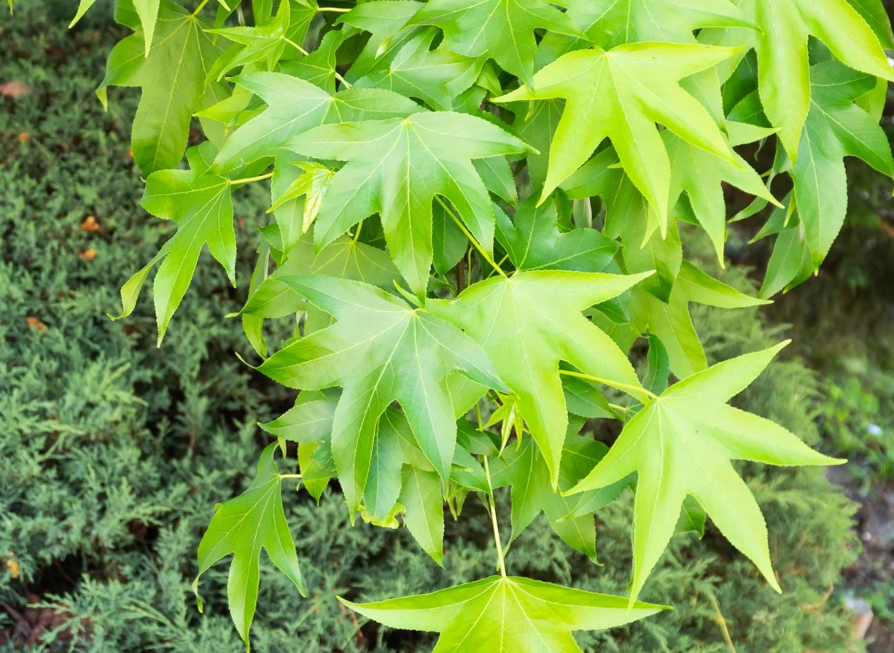 Wszystko to sprawia, że ambrowiec amerykański 'Slender Silhouette' jest doskonałym wyborem na małe działki i do wąskich, ciasnych zakątków w ogrodzie. Trudno znaleźć smuklejsze drzewo, które miałoby podobne do tego gatunku walory ozdobne. O niespotykanej urodzie ambrowca balsamicznego 'Slender Silhouette' decyduje nie tylko efektowny pokrój, ale też pięcioklapowe liście. Przypominają one liście klonu, są błyszczące i przez większość sezonu zielone. Jesienią przybierają ciepłe i ogniste barwy – od złocistych tonów, przez intensywny pomarańcz, aż po głębokie szkarłaty czy odcienie fioletu.