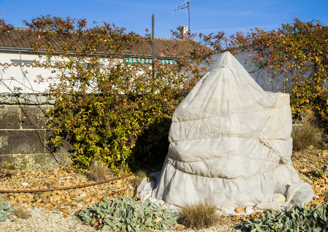 - Kolejny błąd pojawia się wtedy, gdy okrywamy roślinę za pomocą specjalnego materiału do osłaniania roślin na zimę. Błąd ten polega na nieokrywaniu podstawy krzewu. Chłodne wiatry potrafią wymrozić roślinę w tym miejscu. To właśnie podstawa rośliny jest najważniejsza do zabezpieczenia.