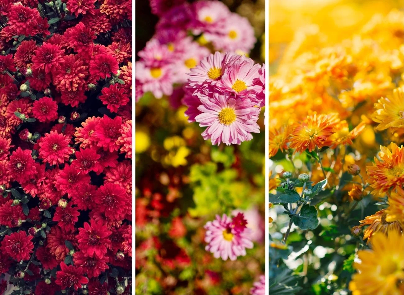- barwą – chryzantemy w zależności od odmiany mogą przybierać różne barwy: od białej, przez różne odcienie żółtej, pomarańczowej, różowej, po czerwoną. Mogą też być jednobarwne lub dwubarwne;