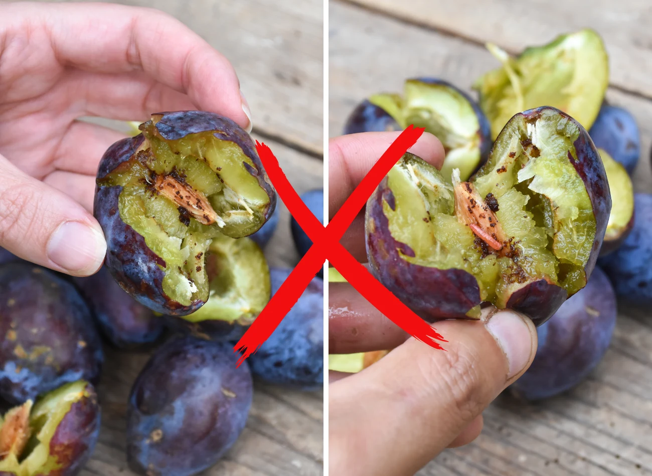 Tego typu objawy z dużym prawdopodobieństwem świadczą o tym, że śliwka jest zainfekowana i że lepiej jej nie jeść.