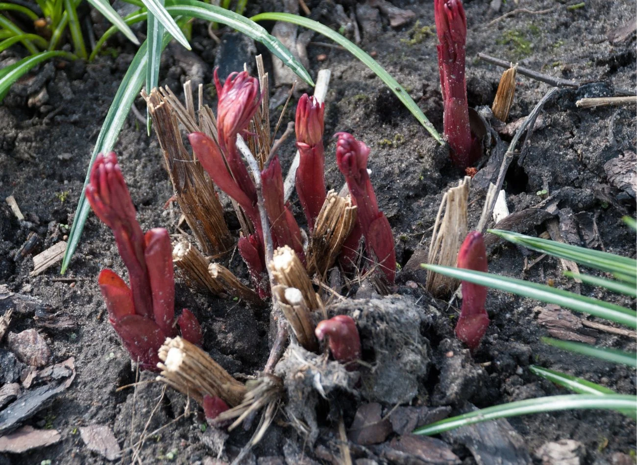 - Ściółkowanie – wieloletnie piwonie radzą sobie bez tego zabiegu. Młode rośliny warto jednak okryć warstwą ściółki (kompostem albo korą), którą usuwamy wczesną wiosną (ostrożnie, by nie uszkodzić młodych pędów).