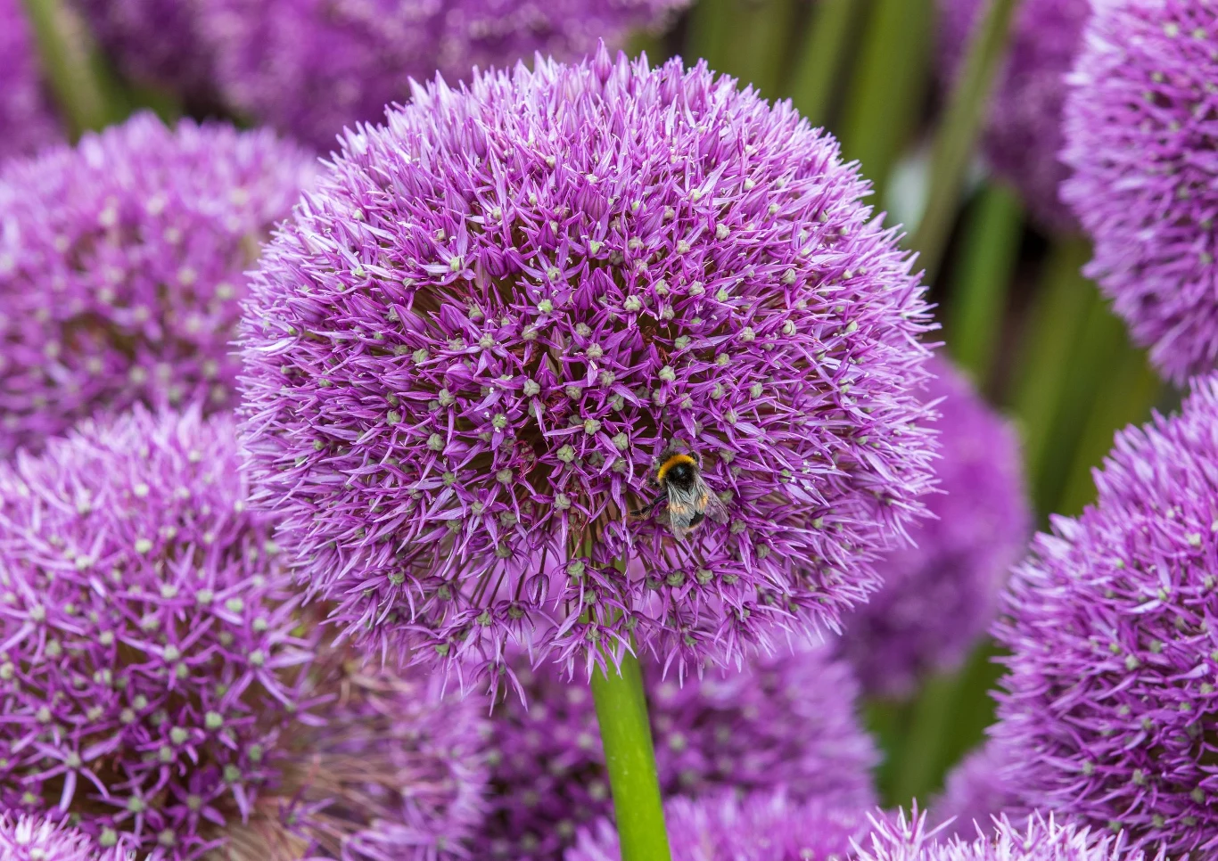 Kwiatostany poszczególnych odmian przybierają odcienie bieli i fioletu. Jeszcze bardziej niż kolorem odróżniają się od siebie kształtem - niektóre przypominają małe kuleczki wielkości orzechów, inne to wielkie pompony. Różna jest też gęstość kwiatów. Na rabatach dobrze łączą się z wieczornikiem damskim, kocimiętką, łubinami i wilczomleczem, ale z powodzeniem odnajdą się w dziesiątkach innych aranżacji. Problem pojawia się kiedy czosnek zaczyna przekwitać.