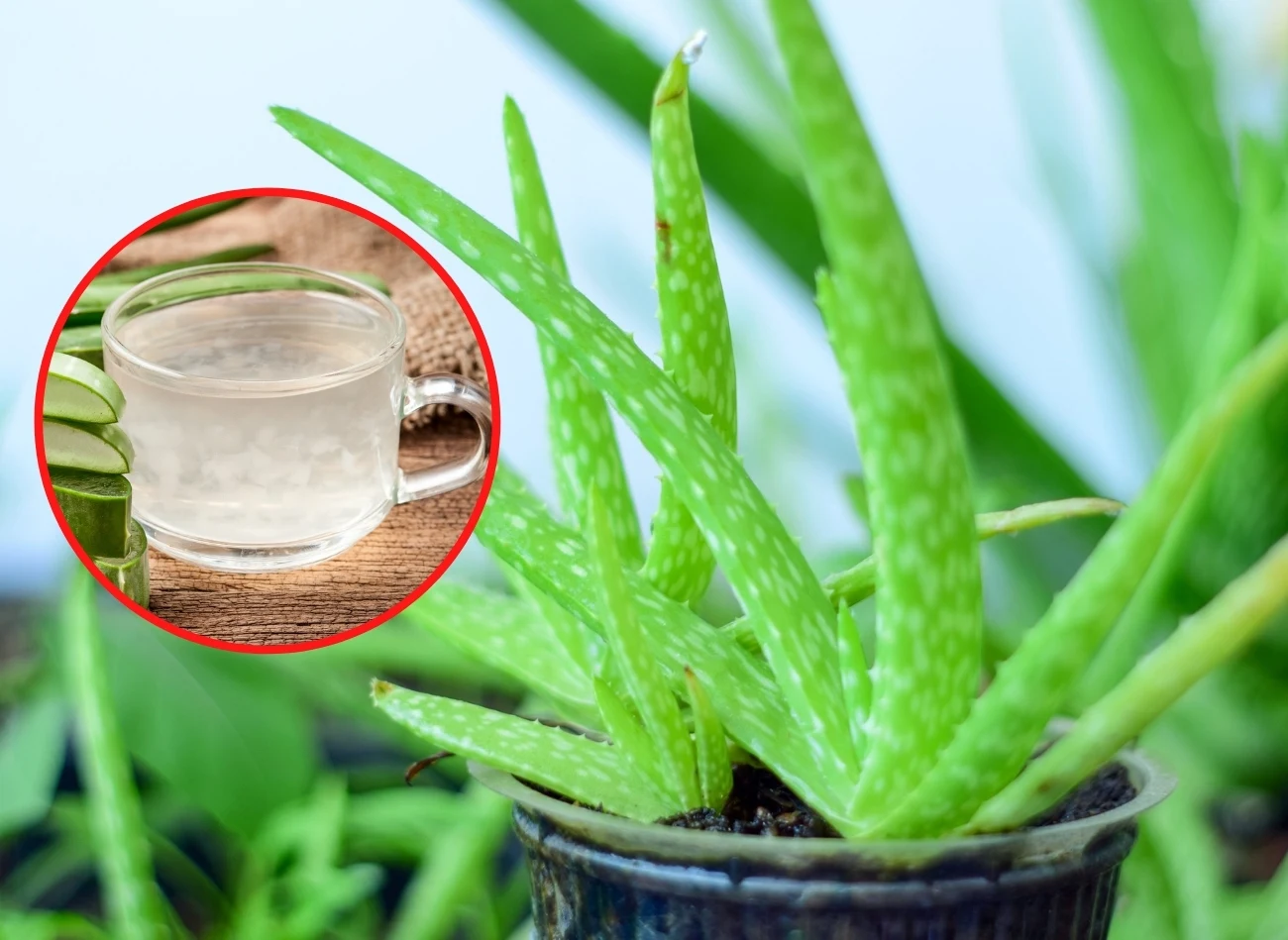 Jeśli chcesz skorzystać z aloesu w celu poprawy stanu swojego zdrowia od wewnątrz, wykorzystaj swój aloes w doniczce do picia. Liście rośliny utnij nożem u nasady i włóż do lodówki na około dobę. Po tym czasie wydrąż z nich miąższ i zmiksuj, np. z sokiem z cytrusów czy miodem.
