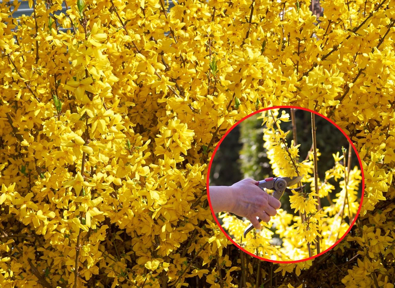 W przypadku forsycji ważny jest zarówno termin, jak i sposób przycinania rośliny. Niektórzy w ogóle zapominają o tym zabiegu pielęgnacyjnym – efektem tego prędzej czy później będzie brak kwiatów na gałęziach. Okres kwitnienia forsycji przypada na przełom marca i kwietnia, dlatego jej przycinanie na przedwiośniu oznaczałoby usunięcie jej młodych pędów. W związku z tym zabieg ten przeprowadza się dopiero wtedy, kiedy roślina przekwitnie – najlepiej na początku maja.