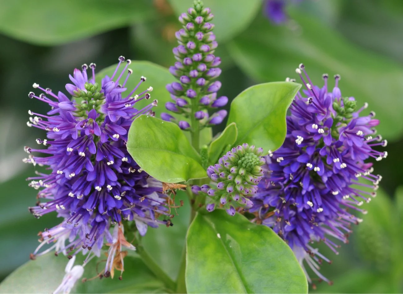 Hebe kwitnie zwykle latem, w zależności od odmiany. Kwiatostany mogą mieć różne kolory, takie jak biały, różowy czy fioletowy.