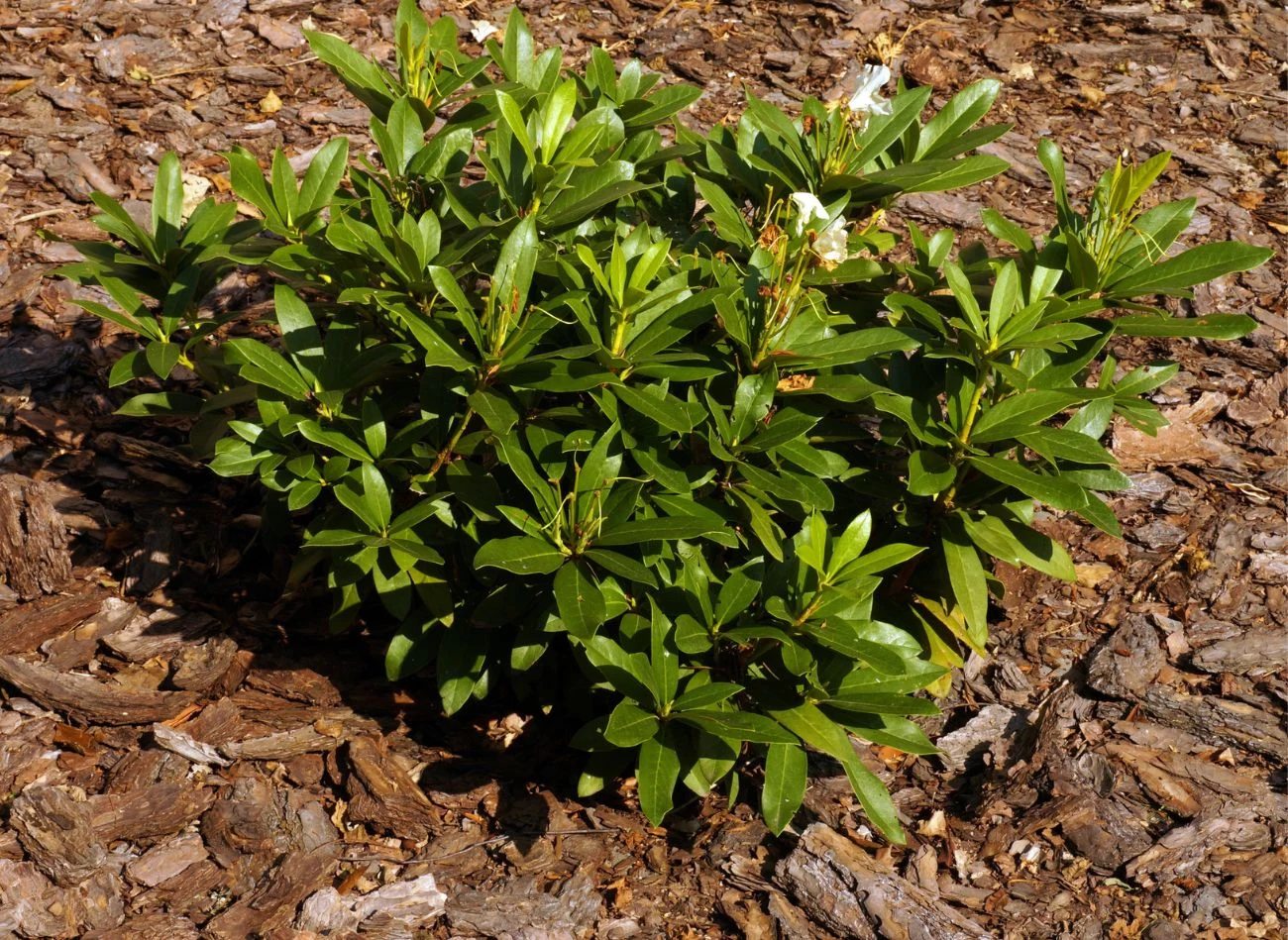 W pomocy marniejącej roślinie najważniejszą rolę odgrywa odpowiednia diagnoza. Przede wszystkim sprawdź pH gleby za pomocą papierków lakmusowych. Dają one dokładny obraz zakwaszenia podłoża. Jeśli odczyn gleby jest wyższy niż 5,5 pH, najpewniej jest to przyczyną żółknięcia liści. Zakwaszanie jesienią wygląda inaczej niż ten sam zabieg przeprowadzany wiosną. O tej porze roku nie używamy saletry amonowej. Pod koniec sierpnia najlepiej zakwasić podłoże warstwą trocin z drzew iglastych. Można do tego użyć również kory lub igliwia, jednak trociny najszybciej oddadzą podłożu odpowiednie składniki. Wystarczy podsypać wokół krzewu dwucentymetrową warstwą trocin, a następnie intensywnie ją podlewać. Po jakimś czasie żółknący rododendron zacznie dochodzić do siebie. Warstwa trocin stanowiła będzie również ściółkę, chroniącą płytkie korzenie różanecznika przed ekstremalnymi temperaturami i utrzymującą wilgoć w glebie.