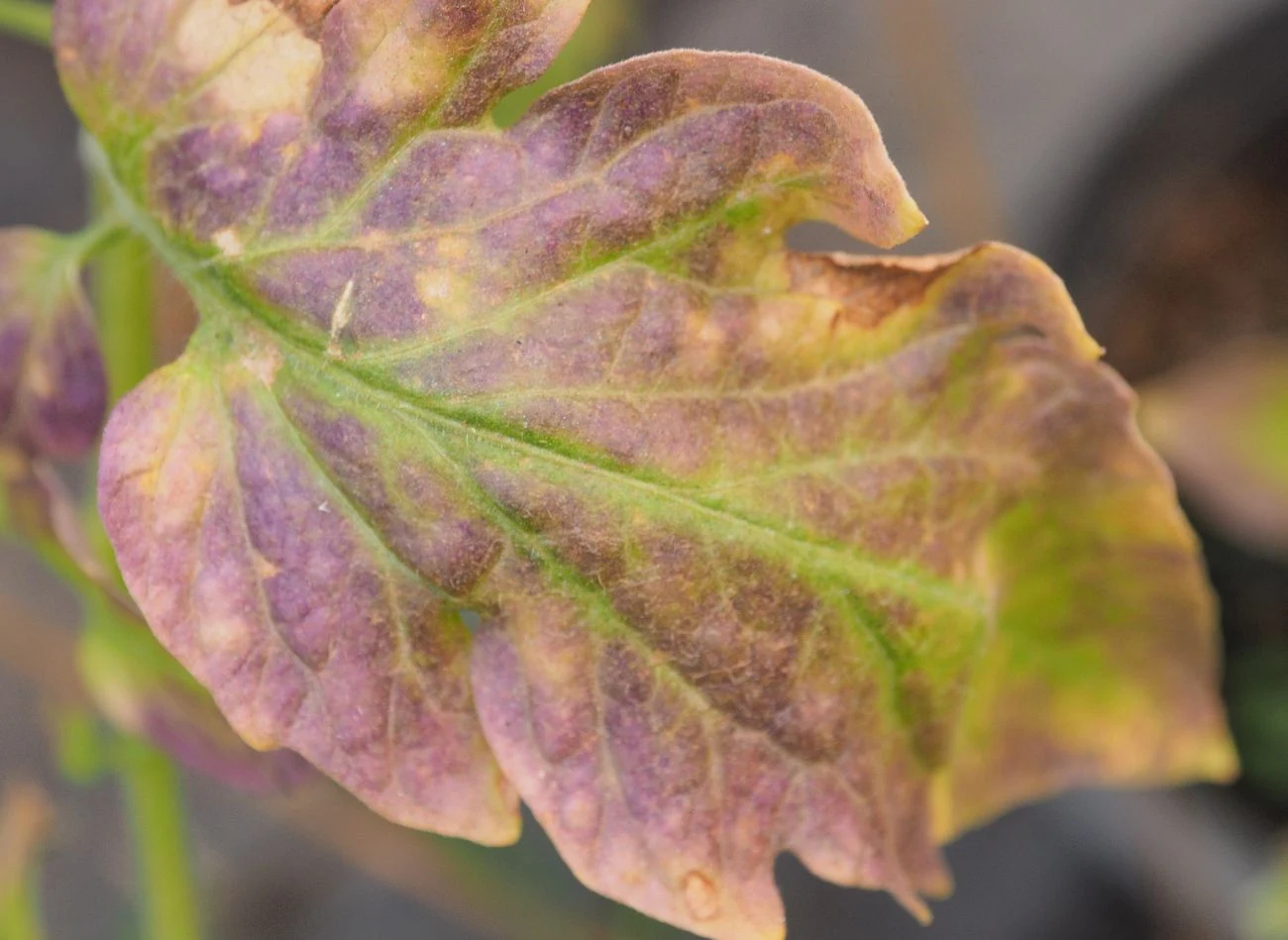 Niekiedy ogrodnicy zwracają również uwagę na fioletowe liście pomidorów. Czy to również jest spowodowane przez chorobę, która może zdziesiątkować uprawy?