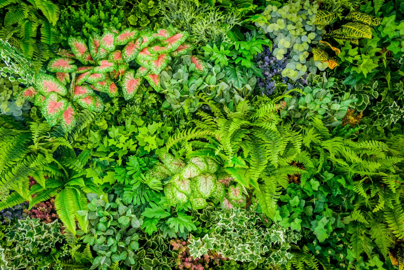W domowych ogrodach wertykalnych dobrze sprawdzają się bluszcze, zielistki, mech, skrzydłokwiaty i wiele innych. W dużych realizacjach pięknie wygląda monstera, areka czy sansewieria. To o czym przy kupowaniu roślin powinniście pamiętać (w zależności oczywiście od koncepcji) to wybór takich, które szybko się rozrosną, nadadzą kompozycji akcenty kolorystyczne i piękną teksturę.