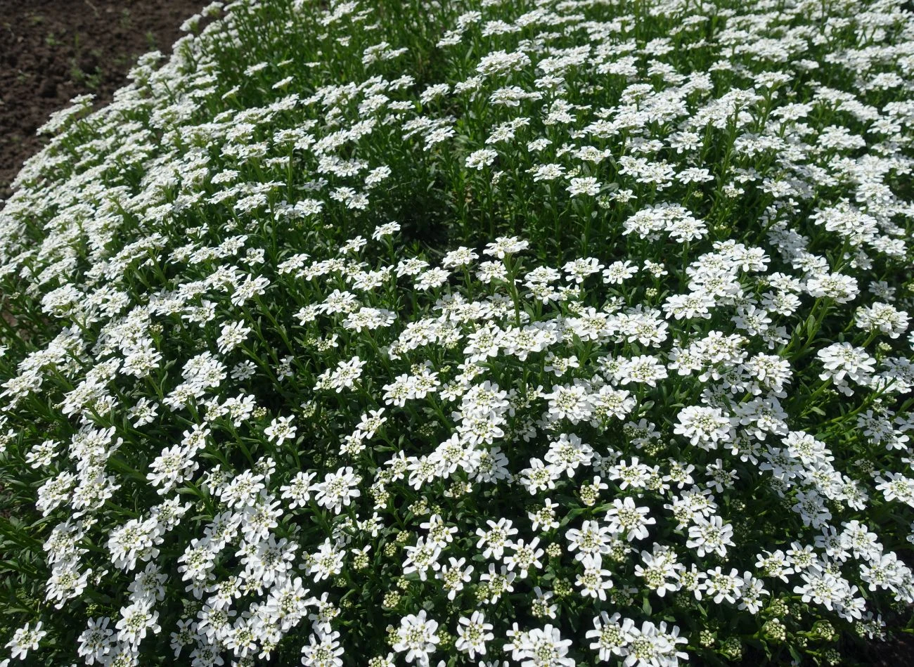 - 'Schneeflocke' – może osiągnąć ok. 20 cm wysokości. Bujnie kwitnie w maju i czerwcu, kiedy wygląda niczym biała poduszka z kwiatów;