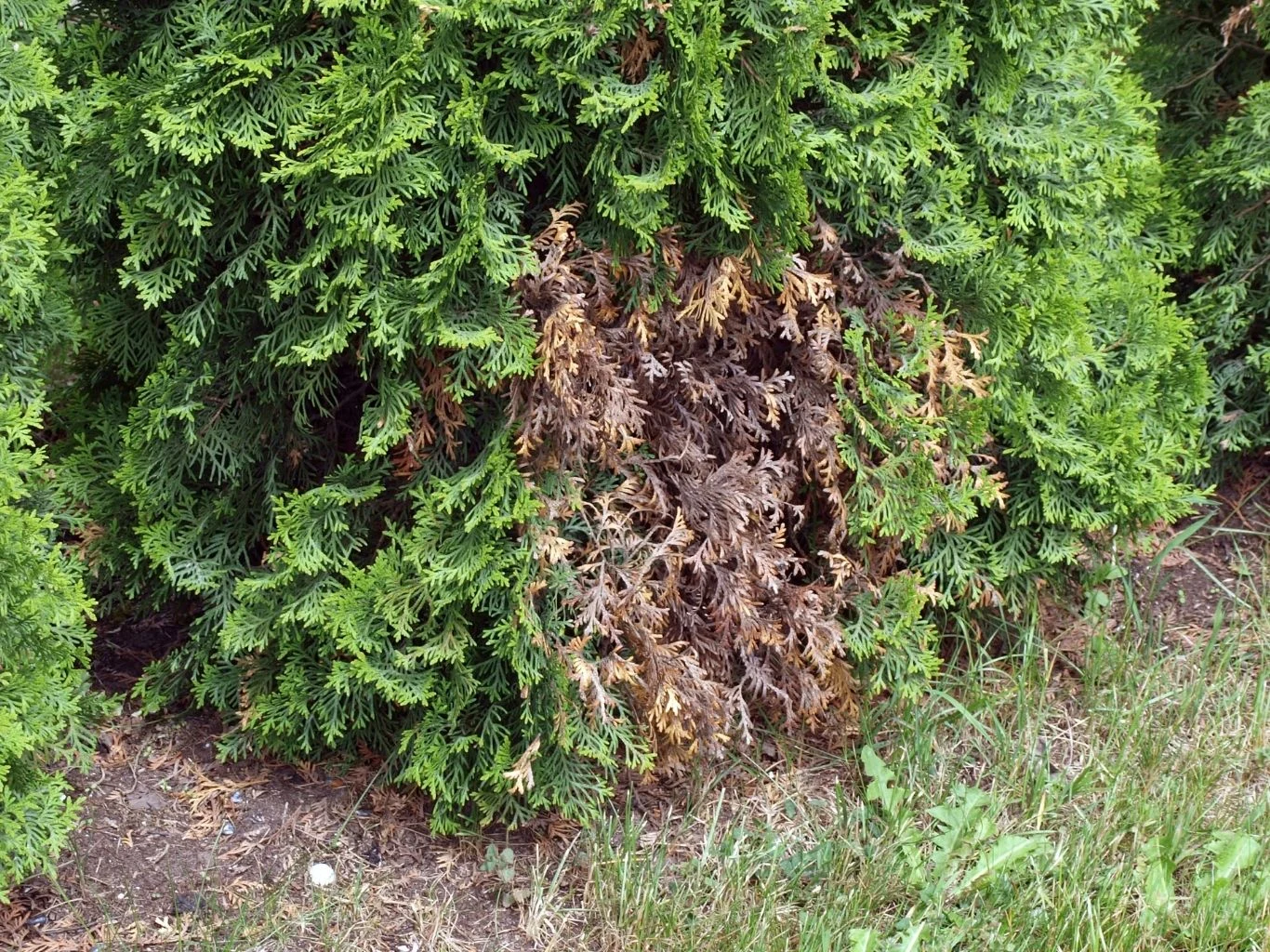 Gdy po raz pierwszy zobaczyłam usychające tuje, pomyślałam, że po prostu przemarzły. Faktycznie, może to stanowić problem - przy zamarzniętej glebie roślina nie pobiera wody i pojawiają się objawy tzw. suszy fizjologicznej. Rozwiązaniem bywa obfite podlanie krzewów jesienią lub podczas zimowych odwilży. Dzięki temu tuja może zmagazynować wodę w pędach.