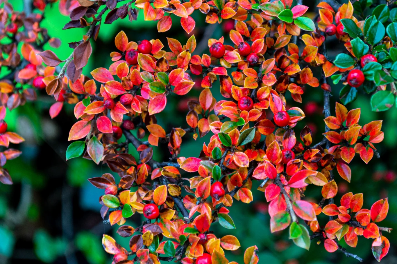 Irga pozioma (Cotoneaster horizontalis) to często wybierany gatunek wśród ogrodników. Płożący pokrój sprawi, że będzie doskonałą rośliną okrywową lub ogrodu skalnego. Mimo że jej wysokość raczej nie przekracza 50 centymetrów, potrafi rozrosnąć się nawet do dwóch metrów szerokości i stworzyć efektowny, zielony dywan. Jesienią liście przybierają piękne, czerwone odcienie, a gałęzie zdobią czerwone owoce, które utrzymują się aż do zimy.