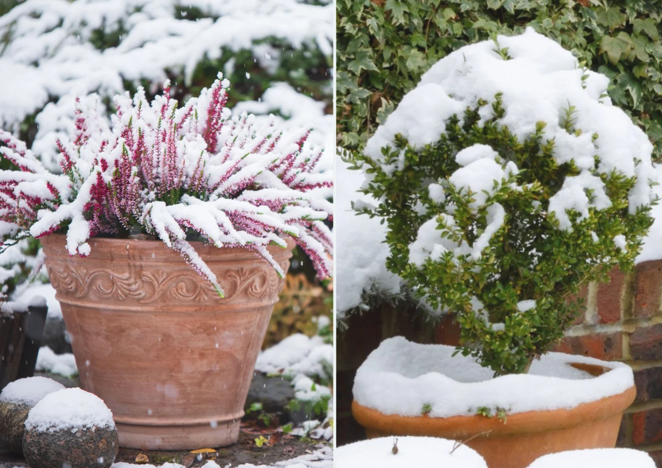 Wbrew pozorom rośliny doniczkowe i te rosnące w dużych pojemnikach są bardziej narażone na niskie temperatury (a więc przemarzanie) niż rośliny w gruncie. Warstwa ziemi w donicy jest niewielka, więc mróz z łatwością dosięga korzeni. Ochronić na zimę trzeba w pojemnikach nawet te gatunki i odmiany, które zwykle nie potrzebują osłon, gdy rosną na rabacie.
