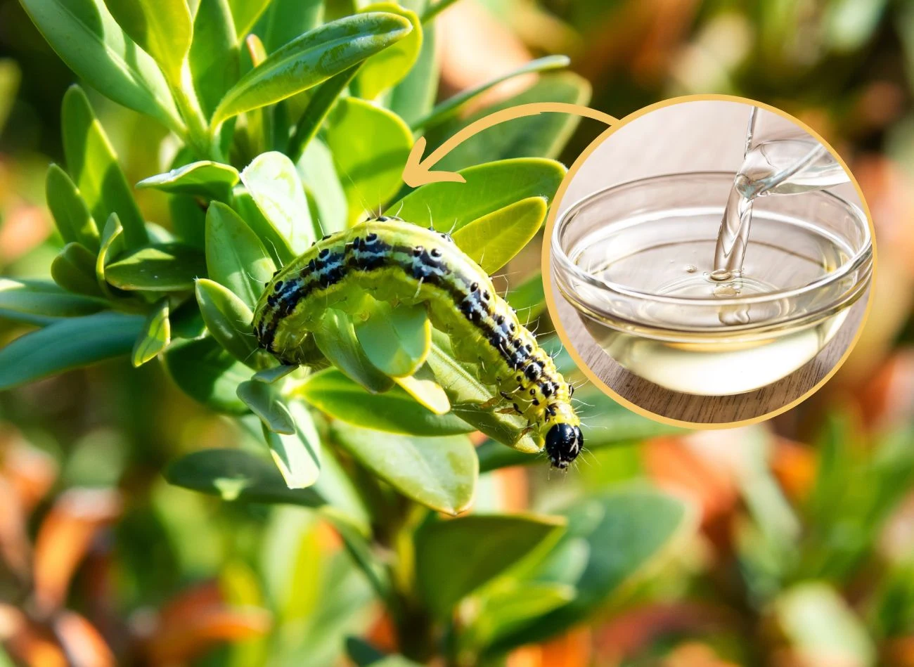 Ocet rozcieńczamy w wodzie w proporcji 1:10, możemy również dodać kilka kropli płynu do naczyń. Pamiętajmy, aby zachować odpowiednie proporcje, w przeciwnym wypadku dojdzie do zniszczenia nie tylko ćmy bukszpanowej, ale także roślin.