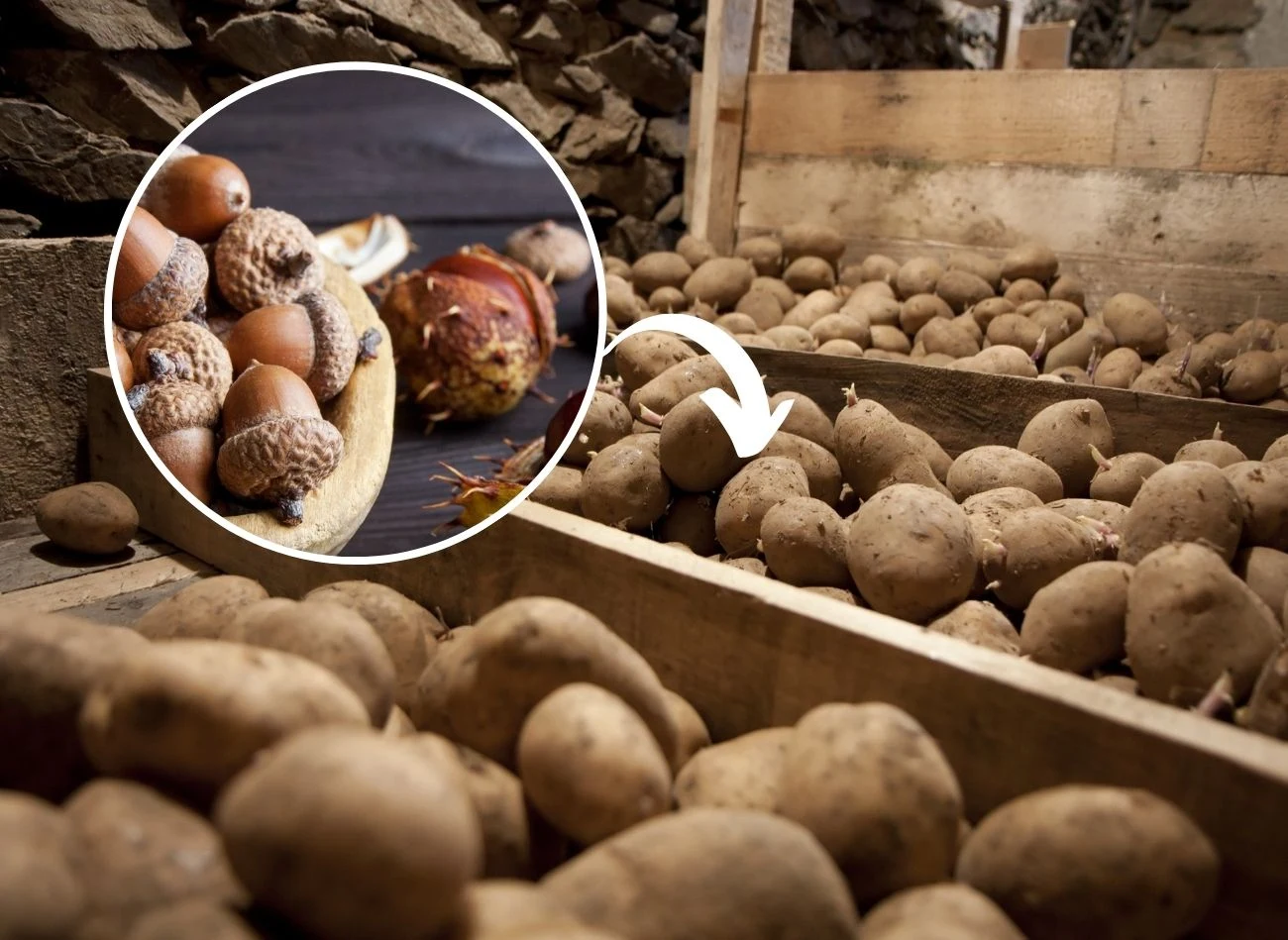 Ziemniaki najlepiej przechowywać w piwnicach lub spiżarniach – ważne, aby nie docierało do nich słońce. Warto je trzymać w specjalnych pojemnikach lub skrzyniach z otworami umożliwiającymi dostęp powietrza do bulw. Z kolei foliowe worki czy zwykle reklamówki nie są dobrym pomysłem, wówczas ziemniaki szybciej kiełkują i gniją. Do warzyw można też dodać zebrane jesienią kasztany i żołędzie. Jest to stary, ale sprawdzony sposób na przechowywanie ziemniaków. Żołędzie zabezpieczą przed utratą wilgoci, z kolei kasztany zatrzymają rozwój kiełków. Dzięki temu warzywa zachowają świeżość i będą jędrne przez całą zimę.