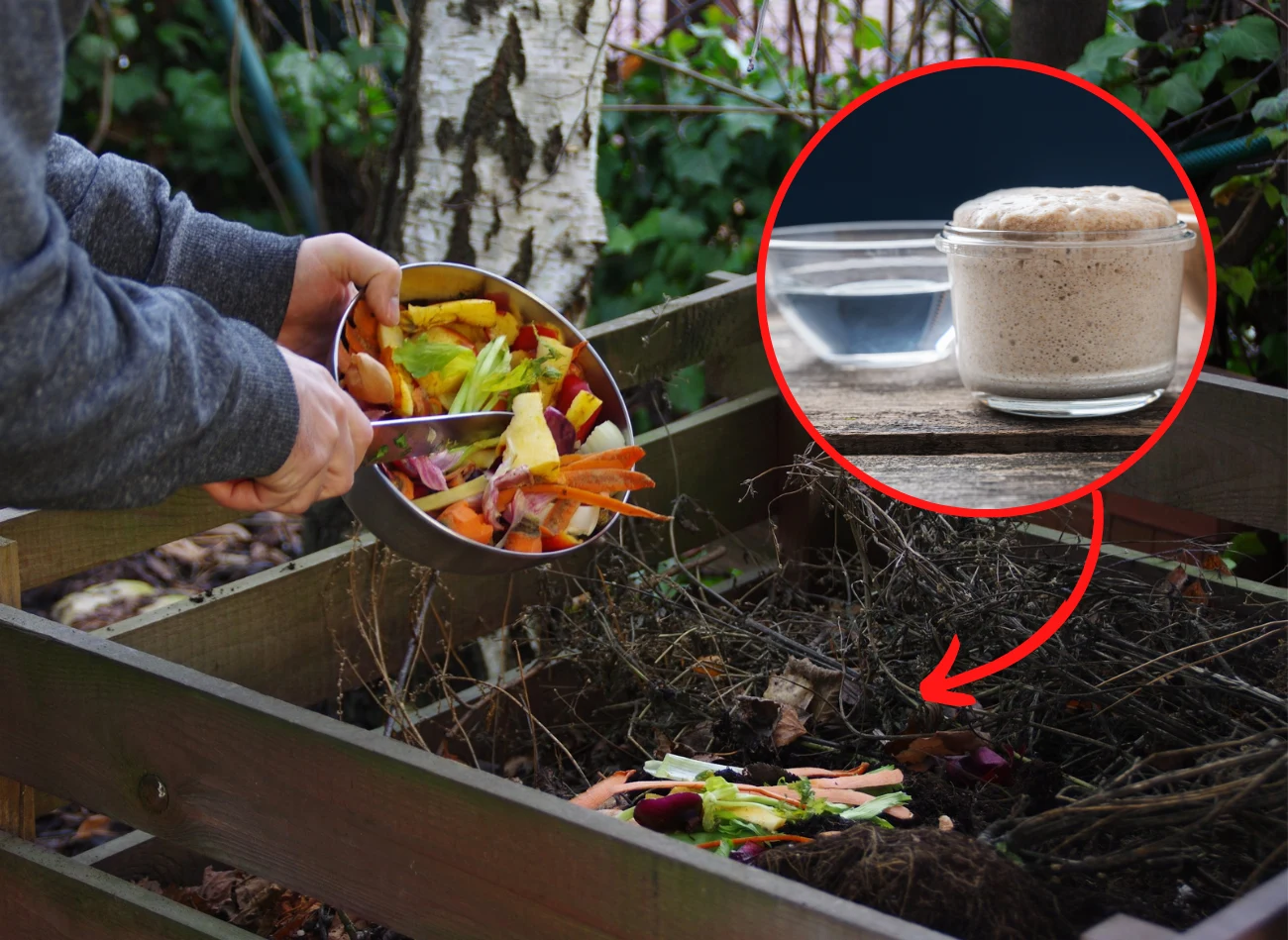 Drożdże do kompostownika mogą być nawet przeterminowane, a użyta woda do zrobienia mieszanki nie musi być czysta, równie dobrze można użyć deszczówki.